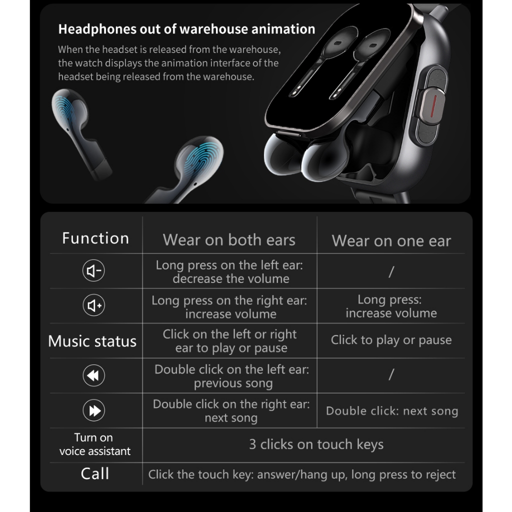 2024 Novo Smartwatch Fones De Ouvido 2 Em 1 Sem Fio Bluetooth TWS Fone Chamada Água Pressão Arterial Esportes Masculino
