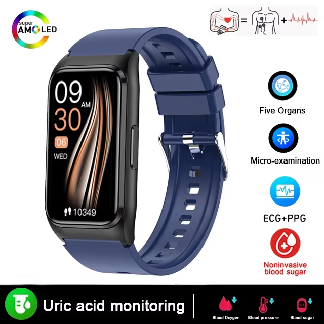 Novo Monitor De Glicose No Sangue Saúde Relógio Inteligente Masculino ECG + PPG Medição Pressão Arterial IP68 À Prova Di