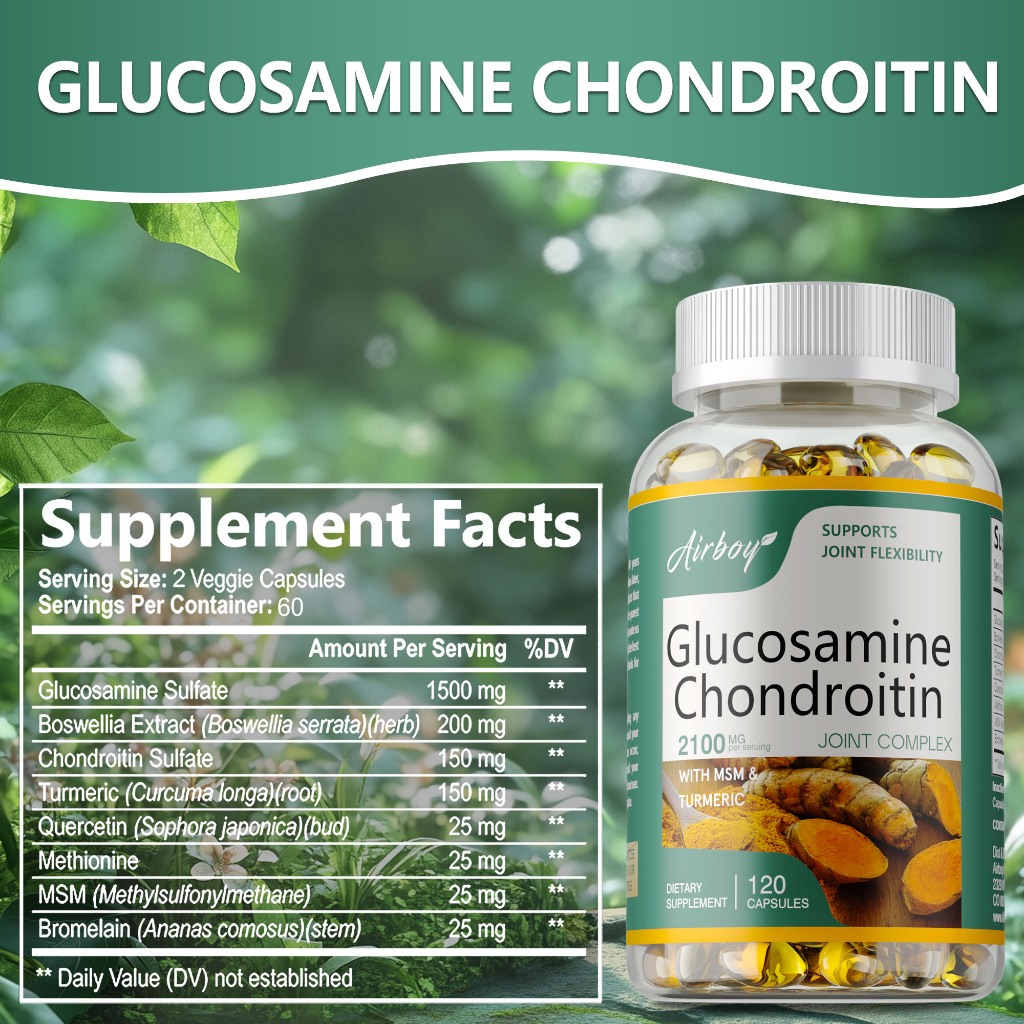 Airboy Glucosamina , Condroitina , MSM E Cúrcuma-30/60/120 Cápsulas Fabricado Nos Eua Direções Para Uso : Leve 1-2 Diari