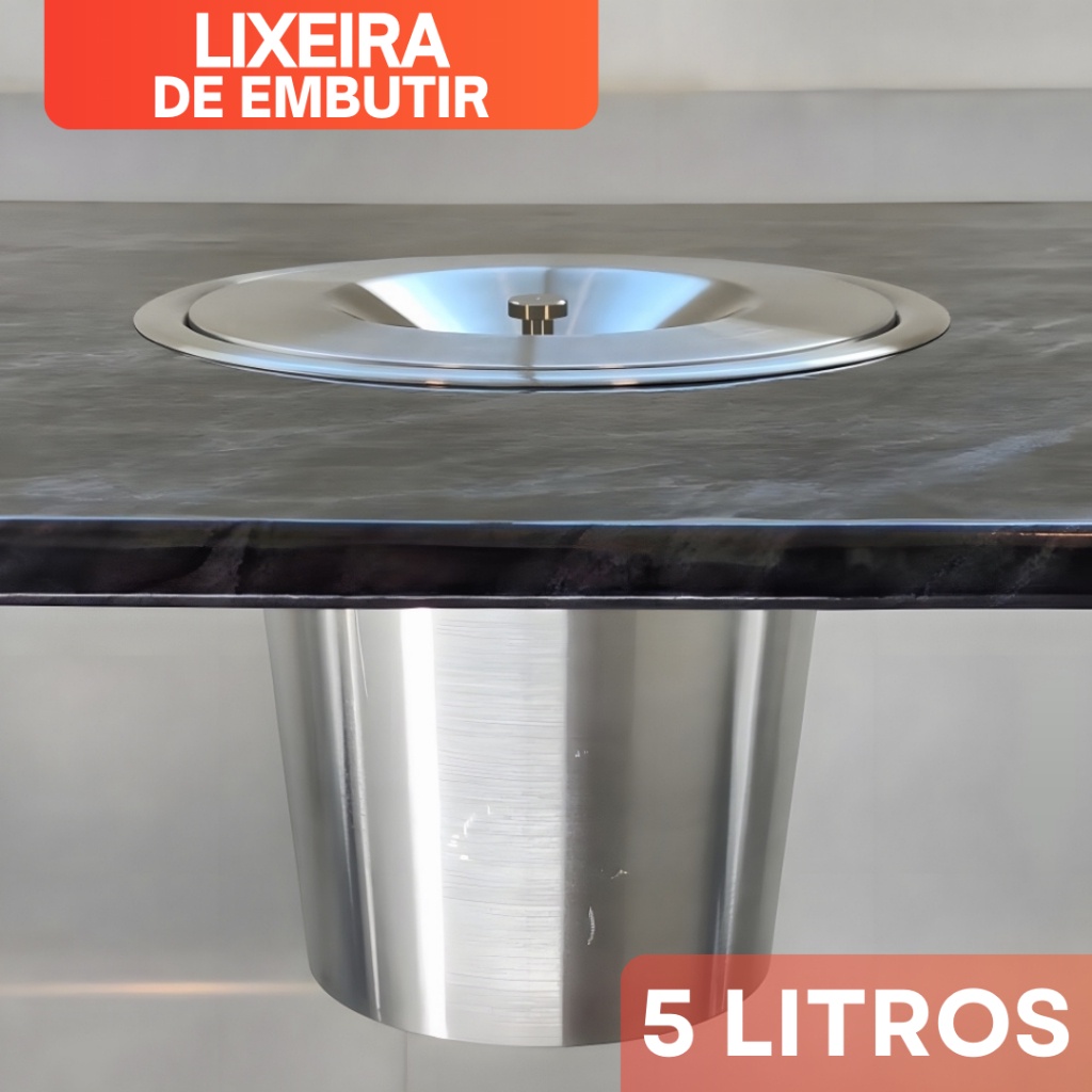 Lixeira de Embutir Inox Cesto De Lixo Embutir Bancada Granito Cozinha - 3 Litros 5 Litros 8 Litros