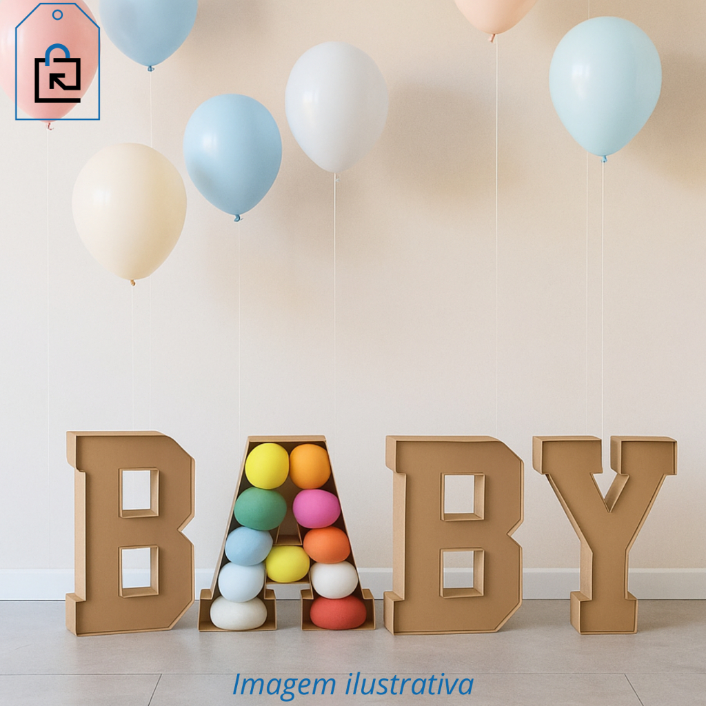 Kit Letras BABY 3D MDF Cru Decorativo Festas Cenários Chá de Bebê Chá Revelação Festa Infantil
