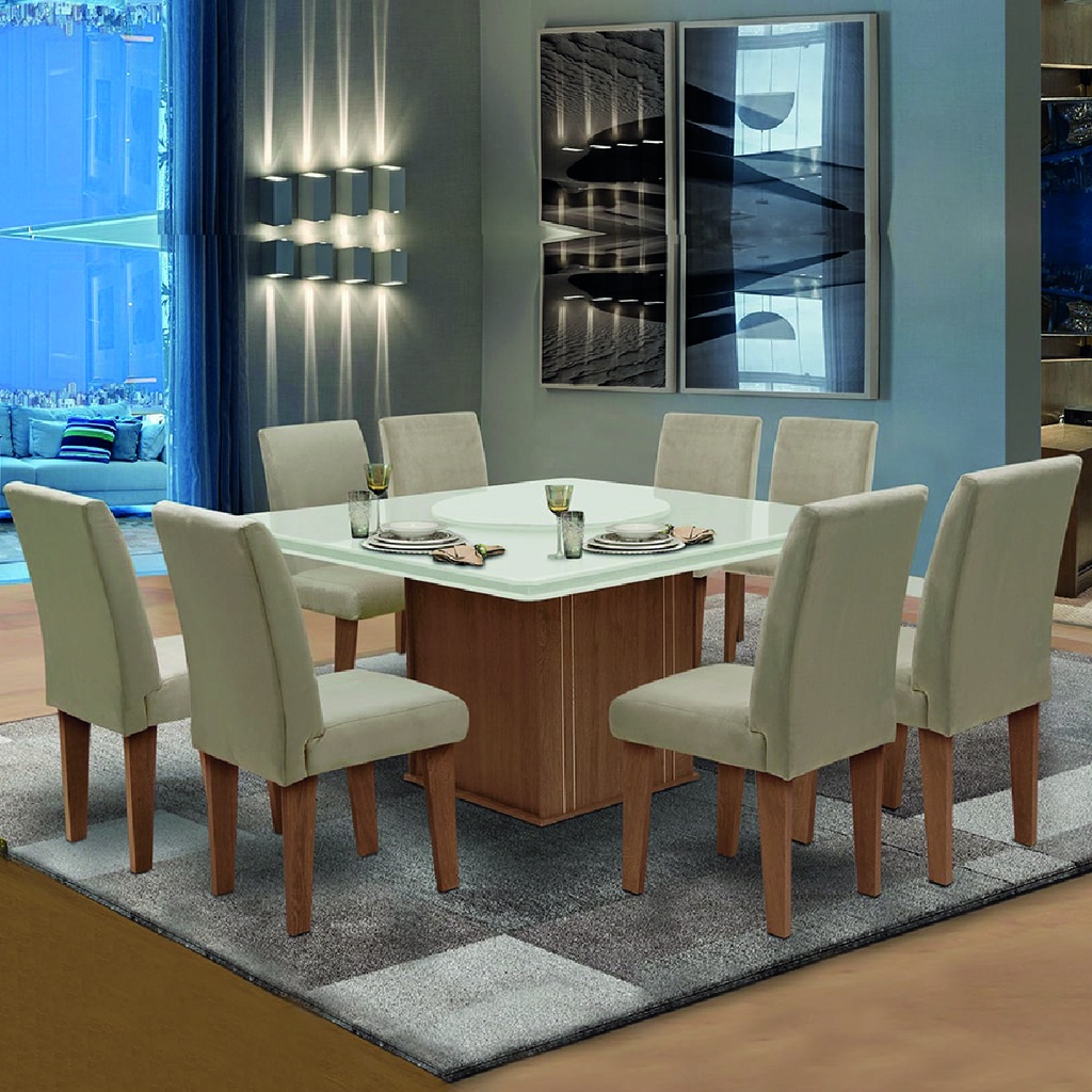 Conjunto Mesa Cedro Off Tampo Giratório 8 Cadeiras Amsterdã