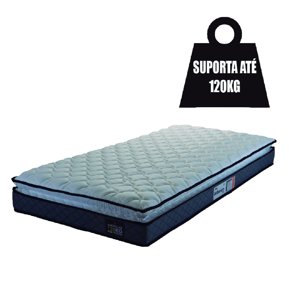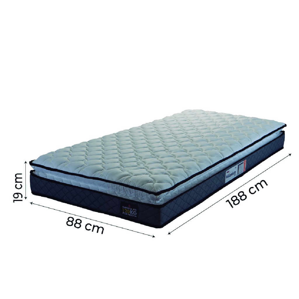 Colchão Solteiro Espuma D33 Pillow Top Millenium 88x188x19cm Cinza/Branco Hellen - Suporta até 120kg