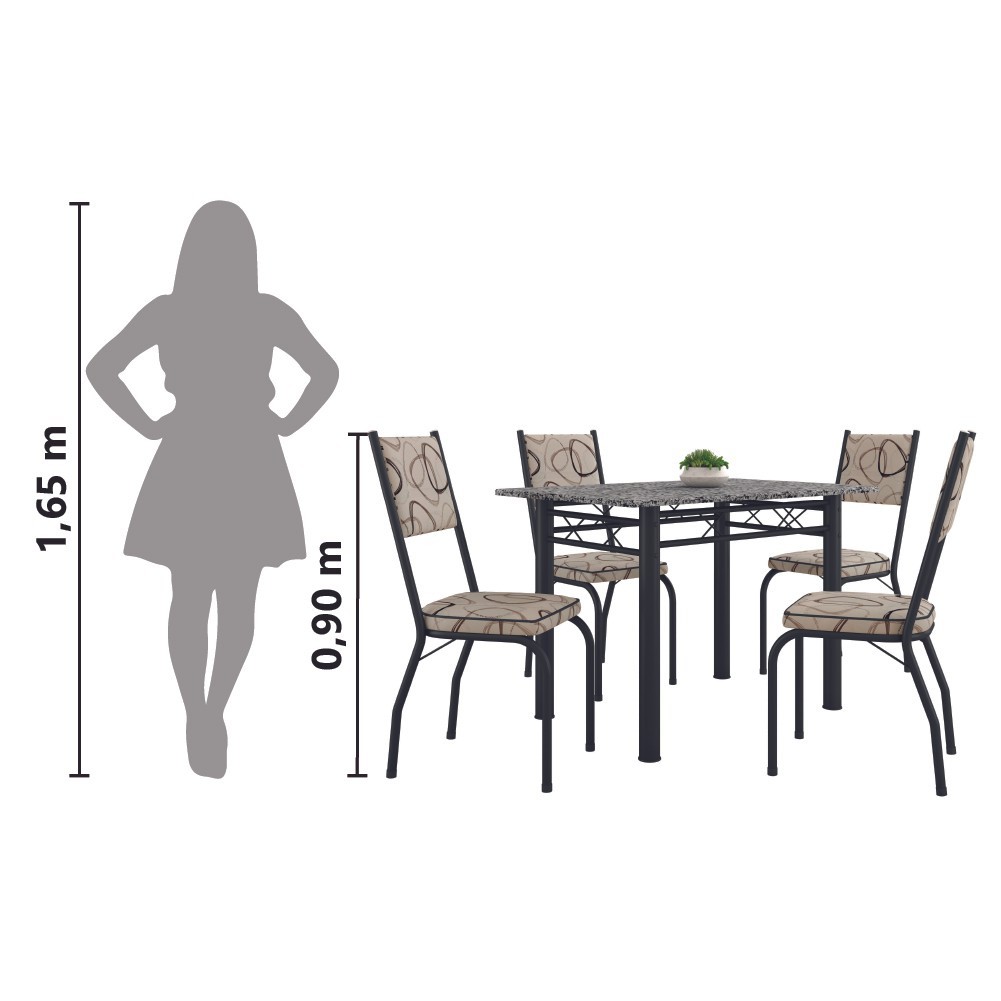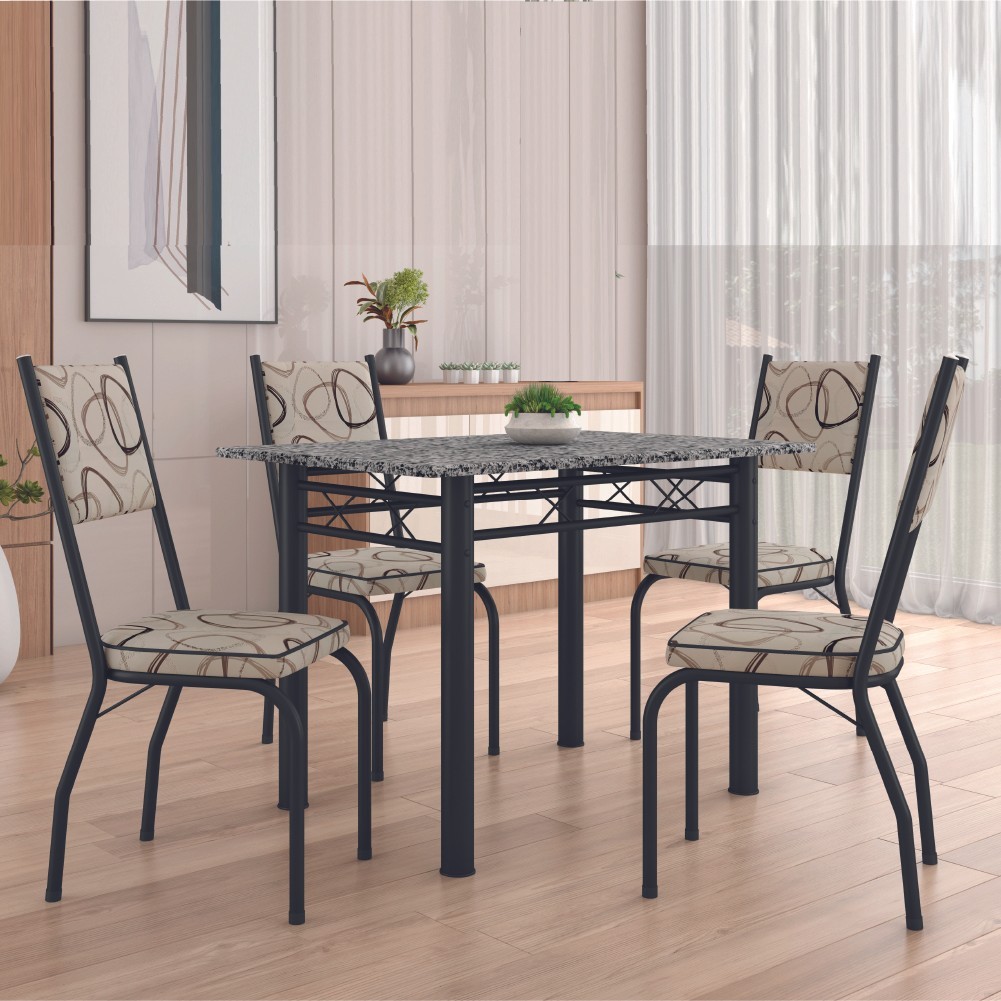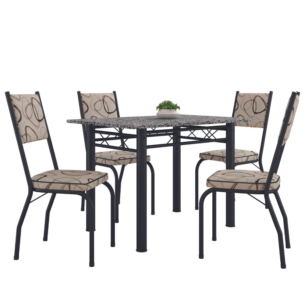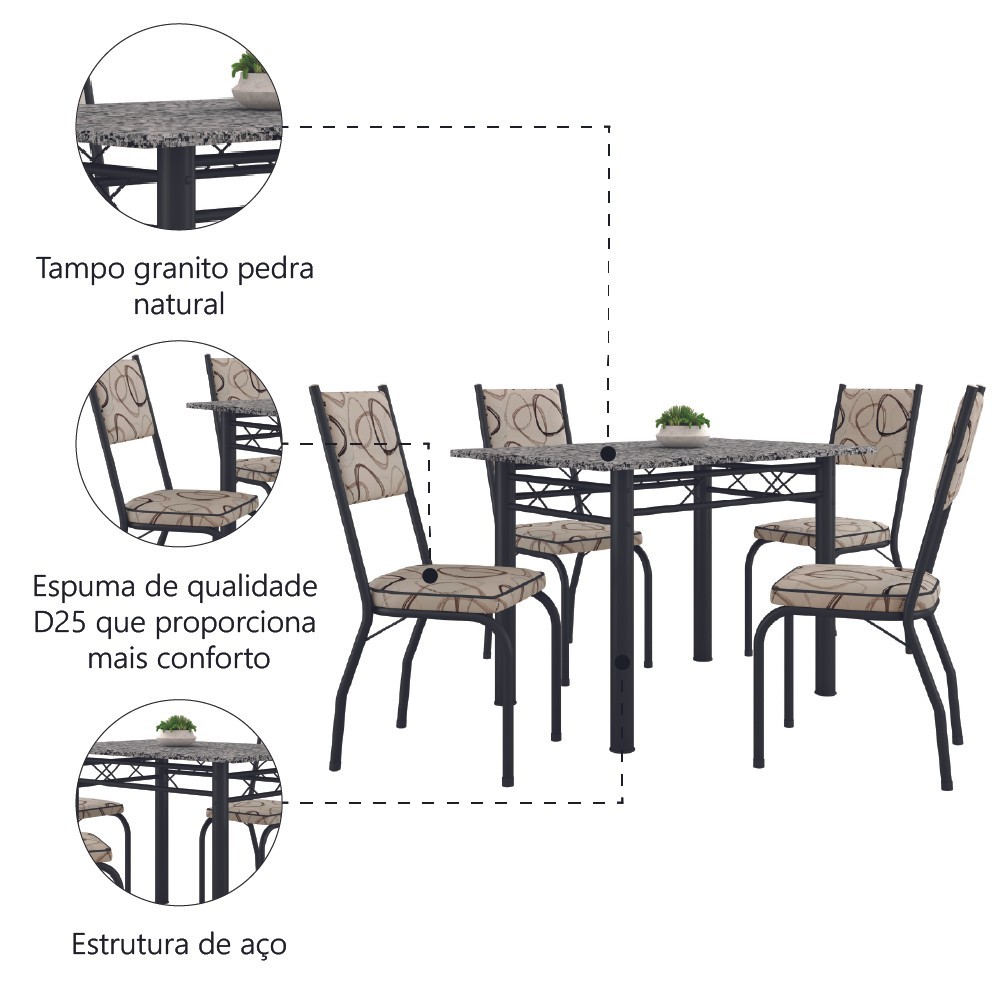 Conjunto Sala De Jantar Mesa Tampo Granito 1,20m Com 4 Cadeiras Diana Preto / Cedro Artefamol