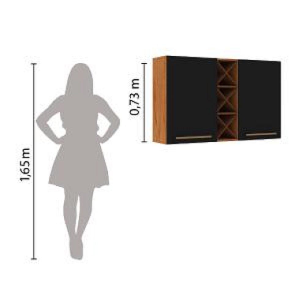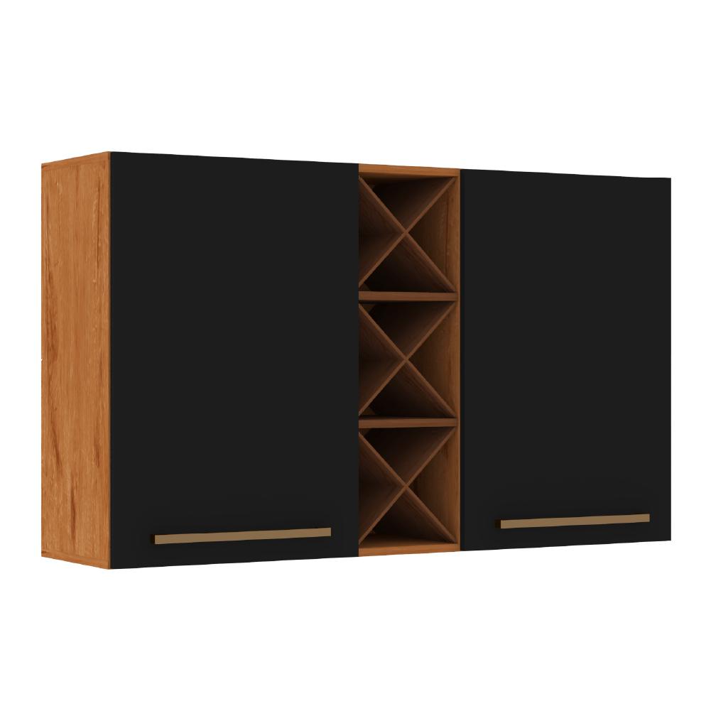 Armário Aéreo 2 Portas Com Garrafeiro Favorita Natura / Preto