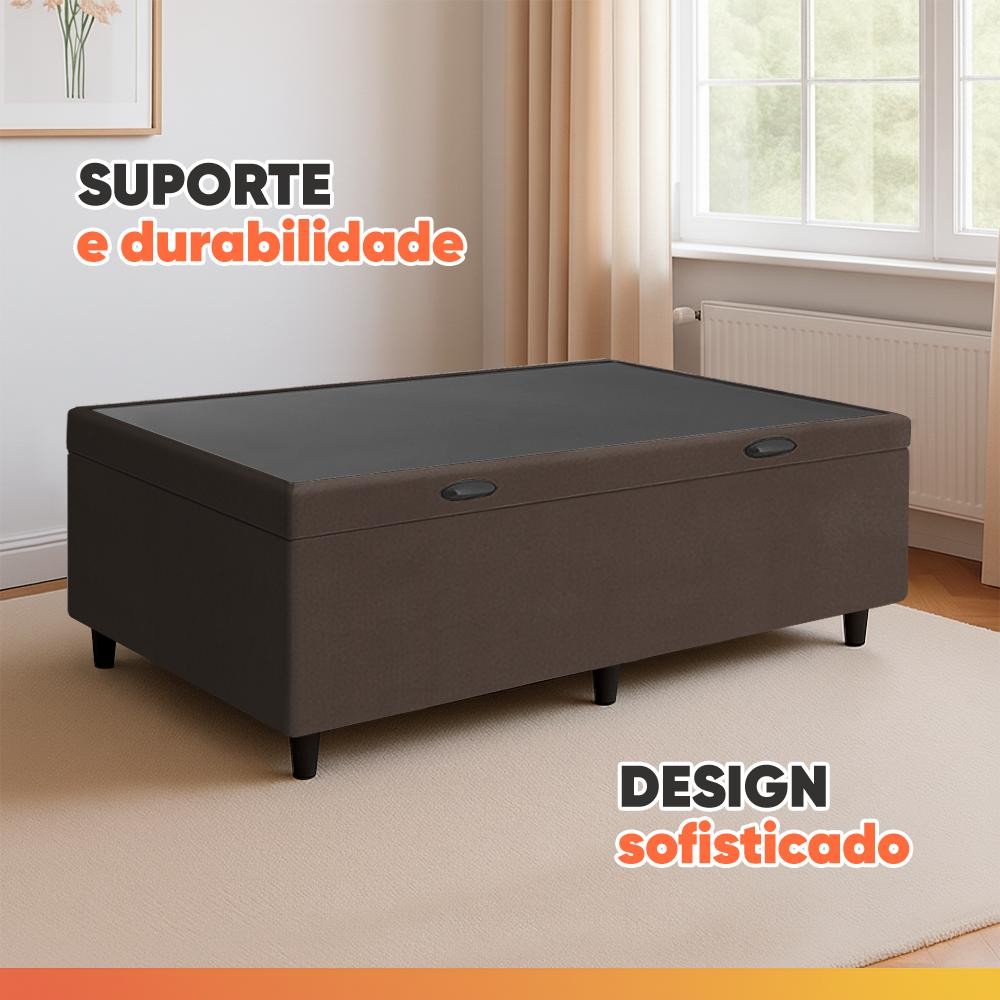 Cama Box com Baú Solteiro 0,88 com 41cm de Altura Prince Suede Marrom