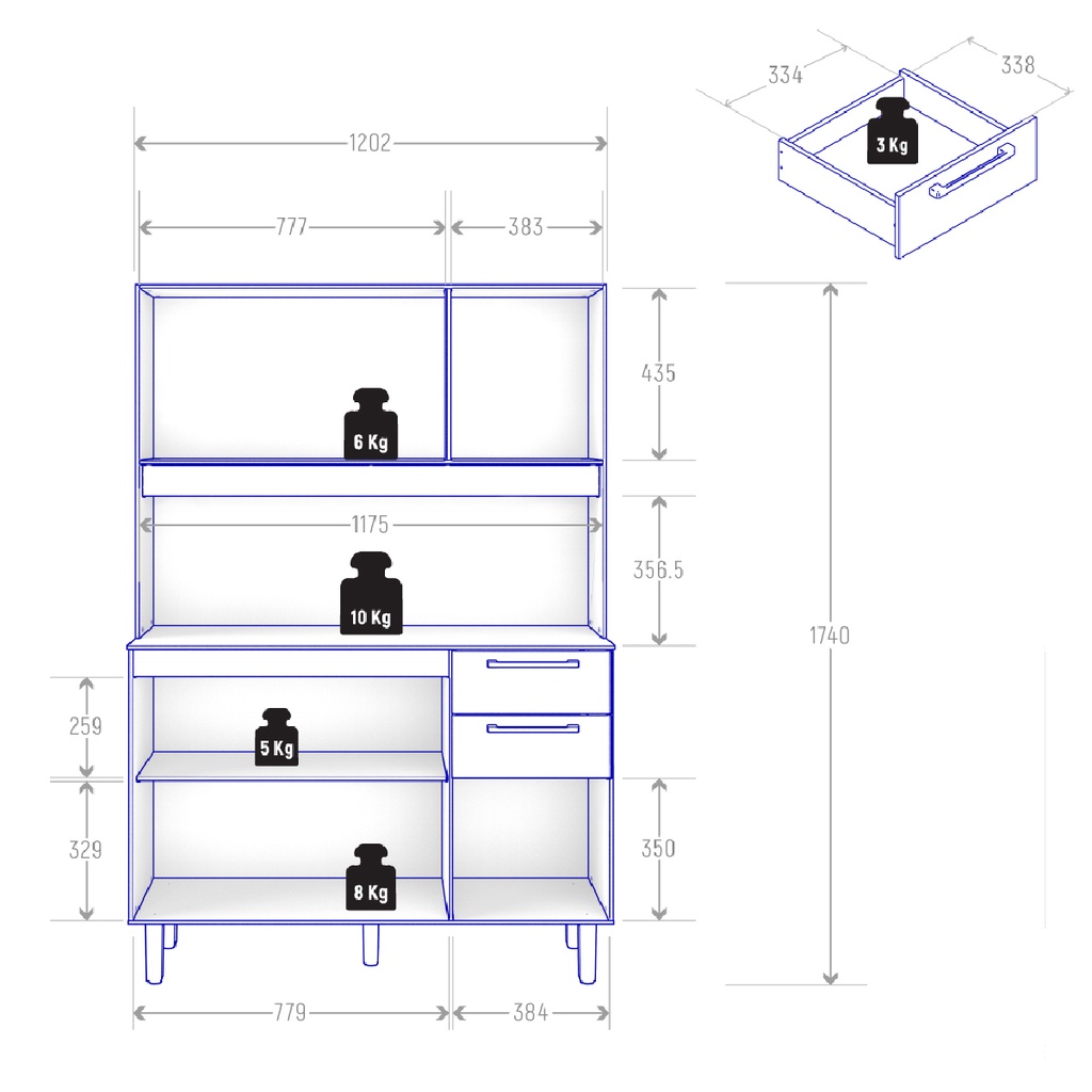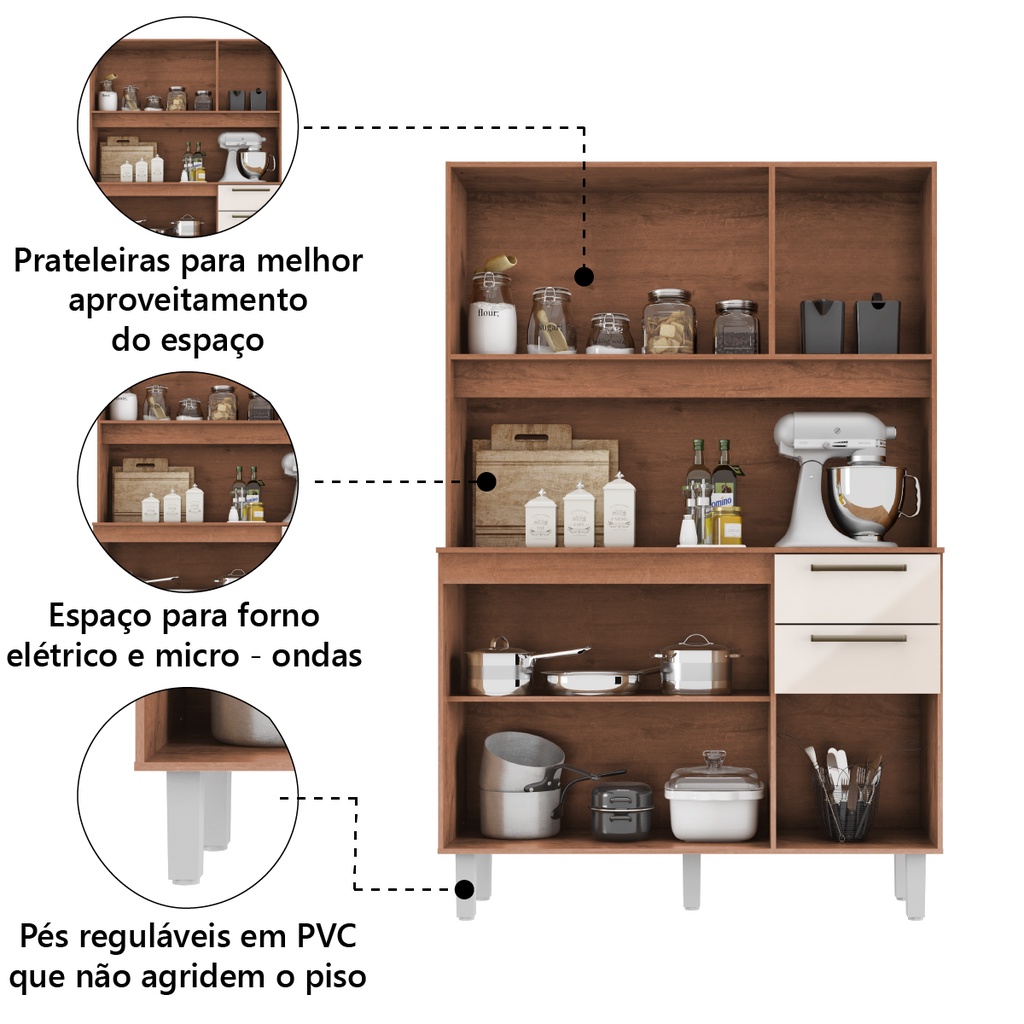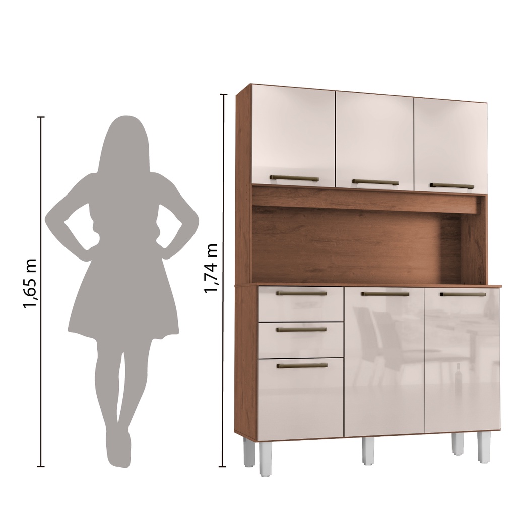 Armário de Cozinha Completa Compacta 6 Portas 2 Gavetas 1,20m Pop Nature / Off White Zanzini
