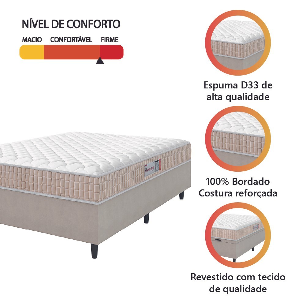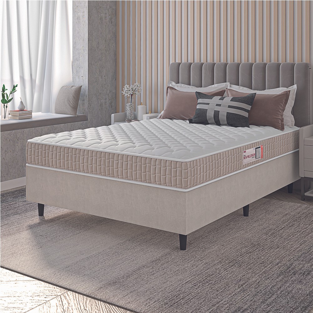 Cama Box Colchão Casal Espuma D33 New Millenium 138x188x57cm Branco / Bege Hellen - Suporta até 120kg por Pessoa