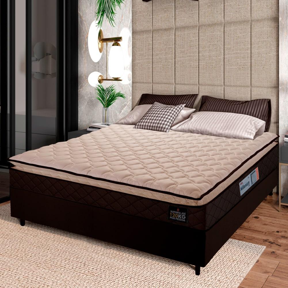 Cama Box Casal Colchão Espuma D33 Pillow Top Millenium 138x188x57cm Marrom Hellen - Suporta até 120k