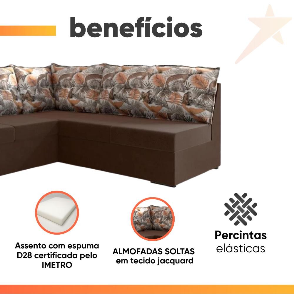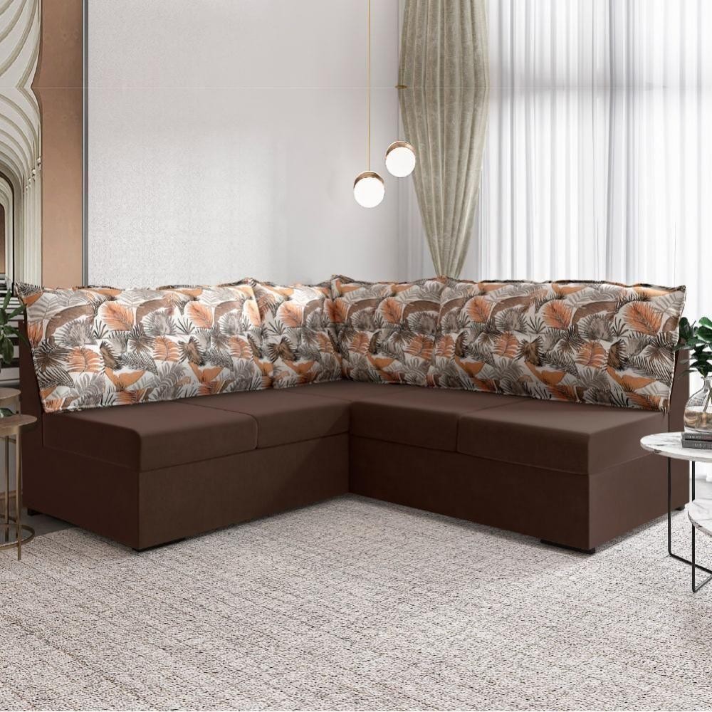Sofá de Canto 5 Lugares Renaut Suede Marrom / Palmeira