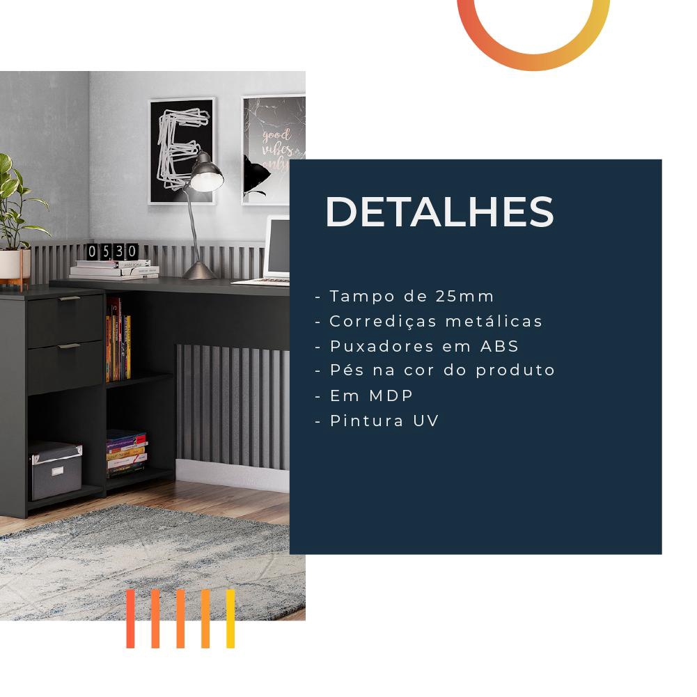 Escrivaninha Com Tampo Giratório 2 Gavetas Nt2060 Preto