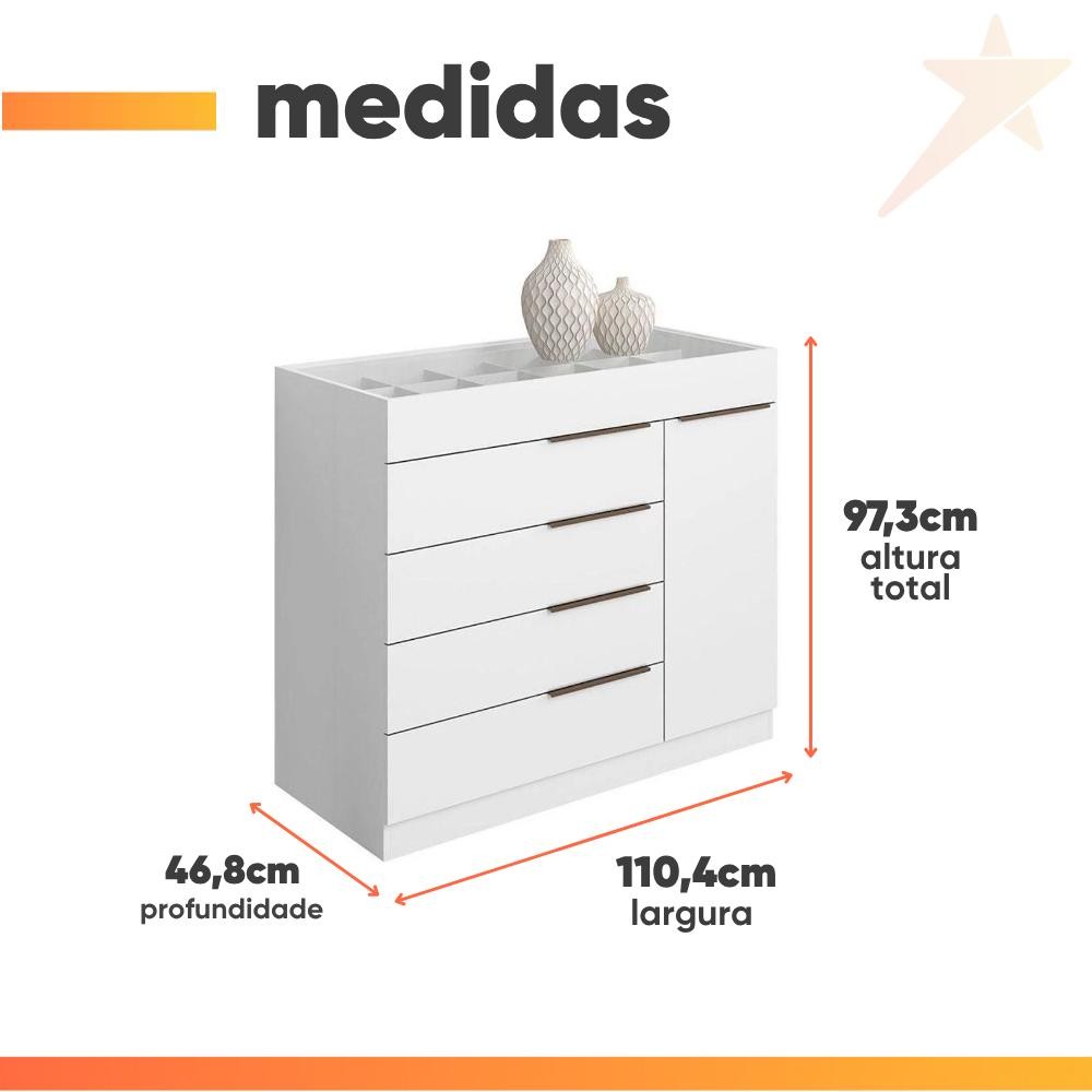 Cômoda 5 Gavetas Com Porta Joias Organizador Tampo De Vidro Sevilha Aramóveis