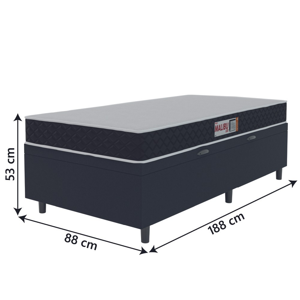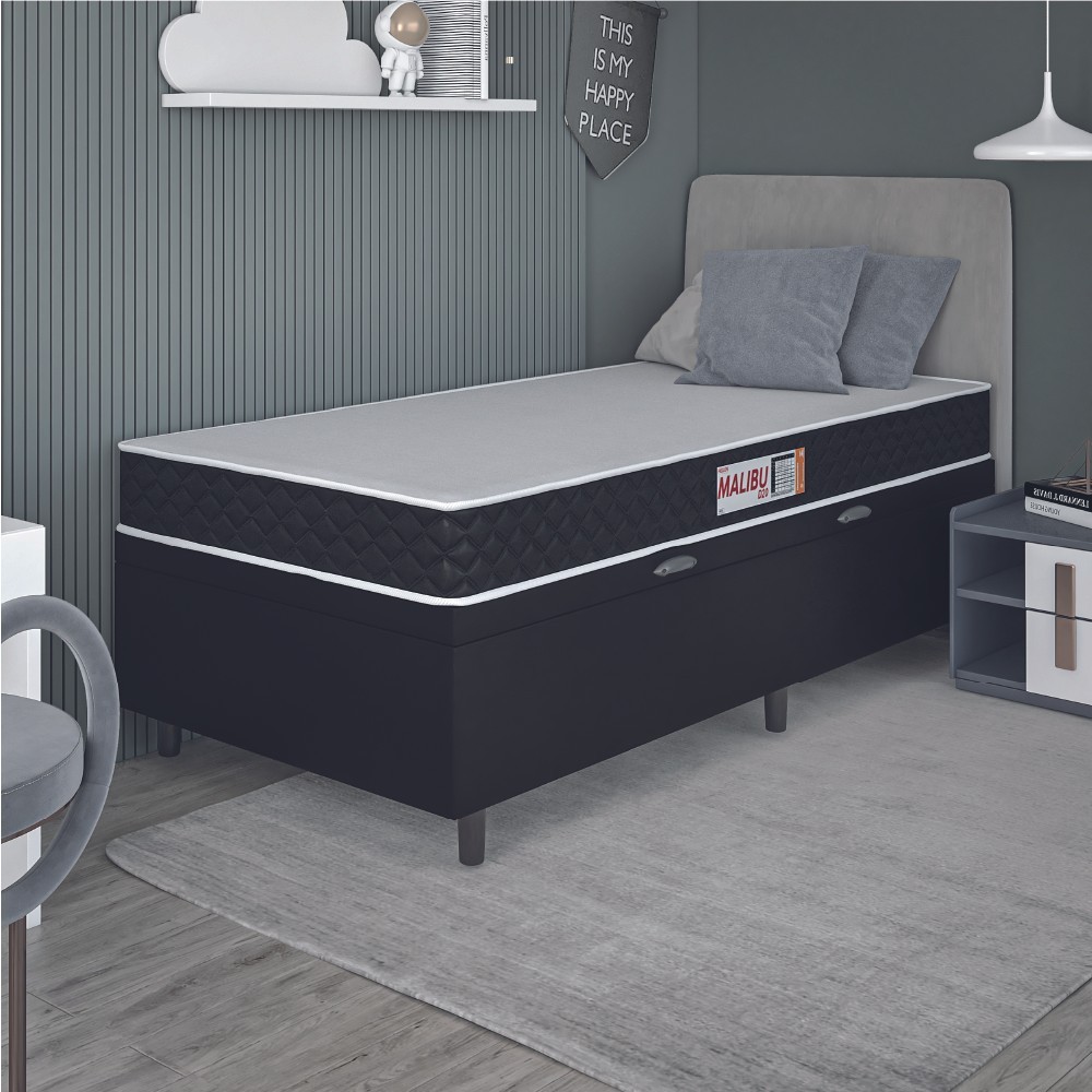 Cama Box Baú Colchão Solteiro Espuma D20 Malibu 88x188x53cm Preto / Branco Hellen