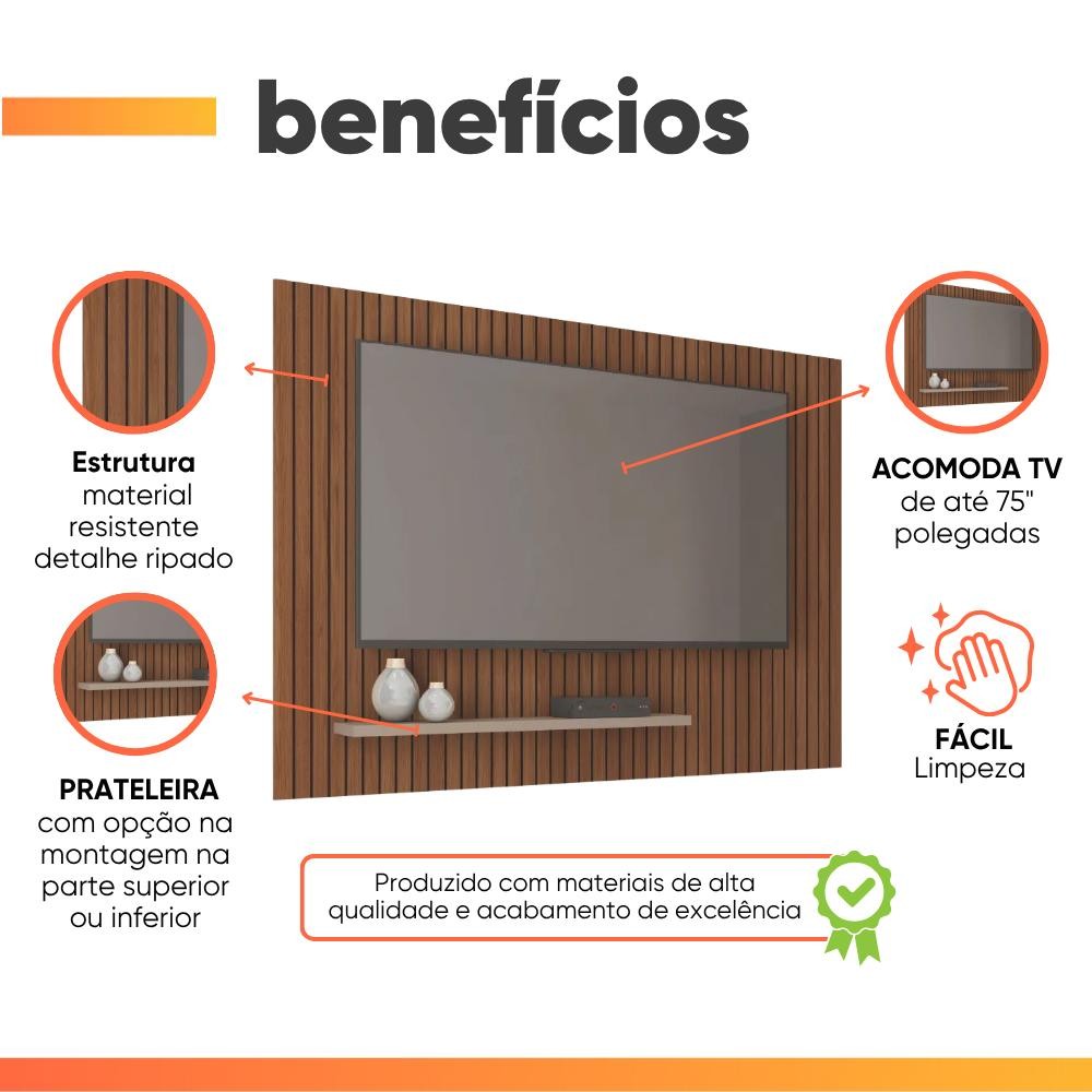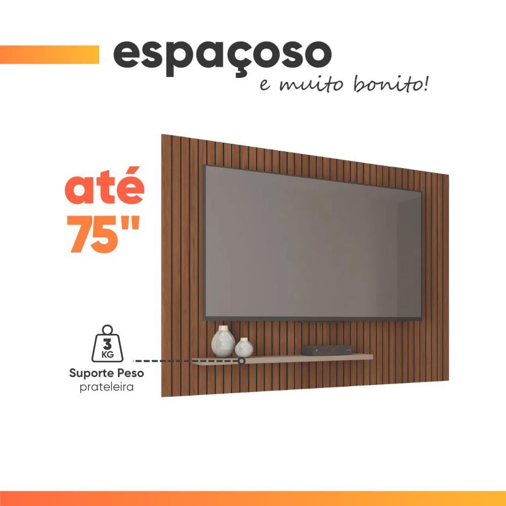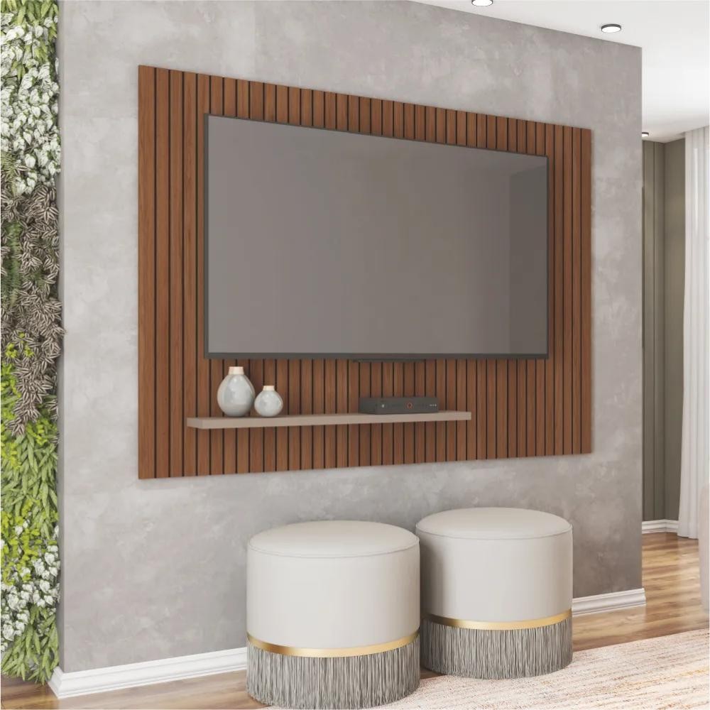 Painel para TV até 75 Polegadas 1,80m Ripado com Prateleira França Fendi / Havana Caemmum