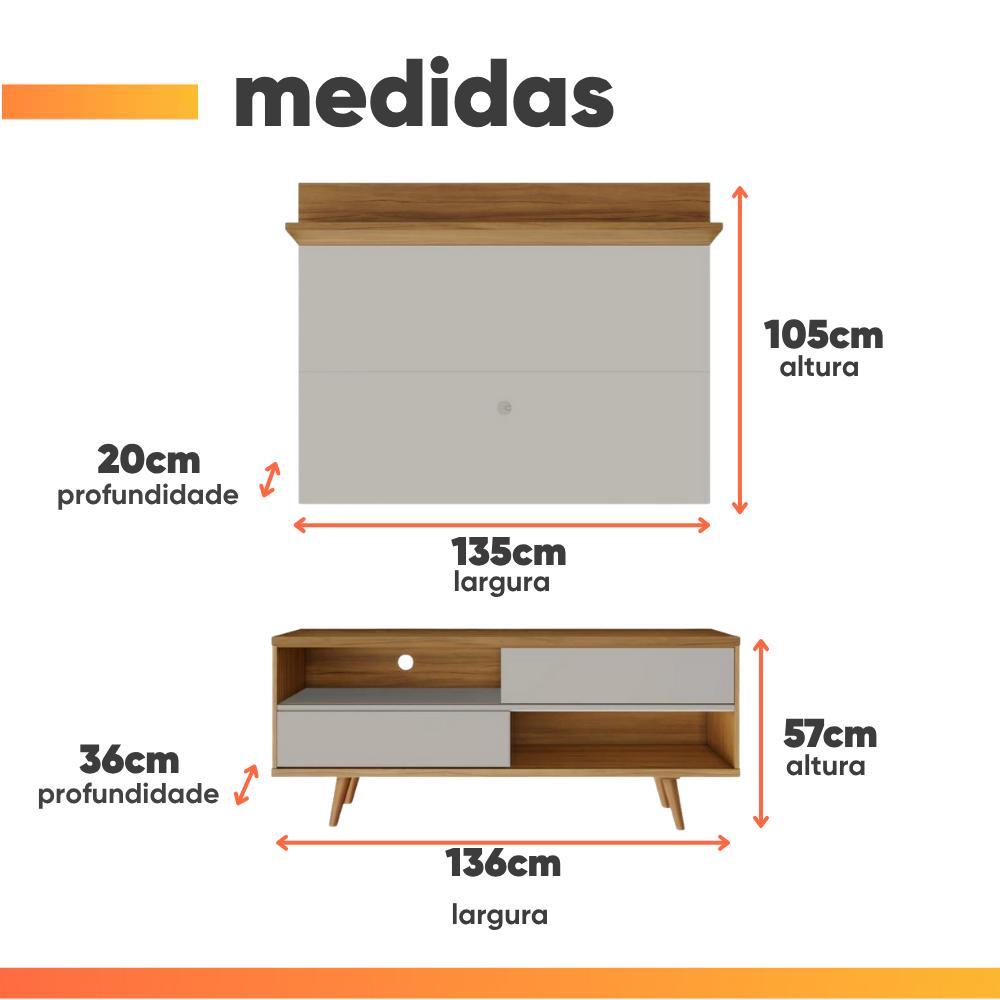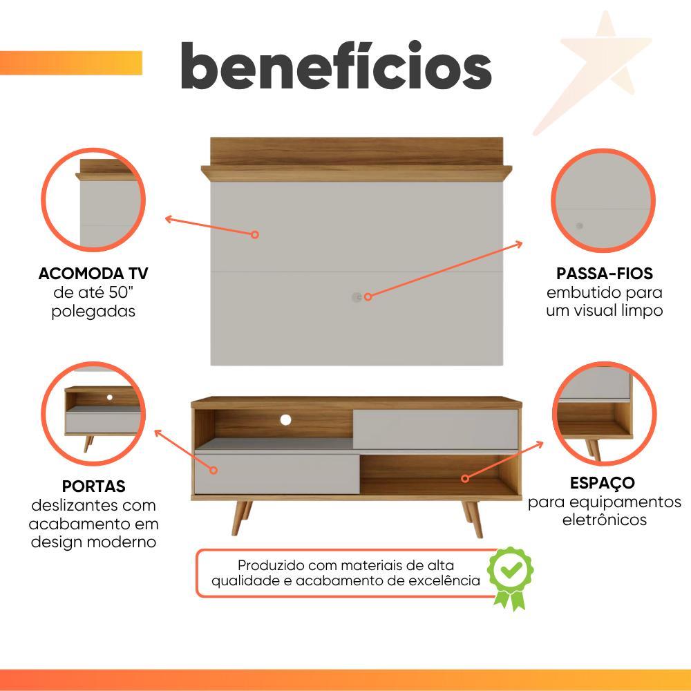 Bancada Retrô com Painel para TV de até 50 Polegadas Notável Off White / Freijó Trend