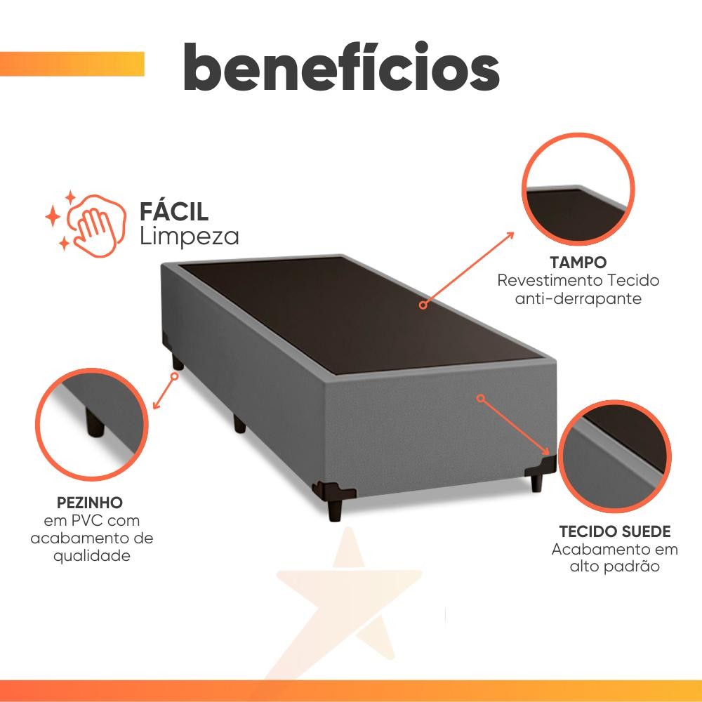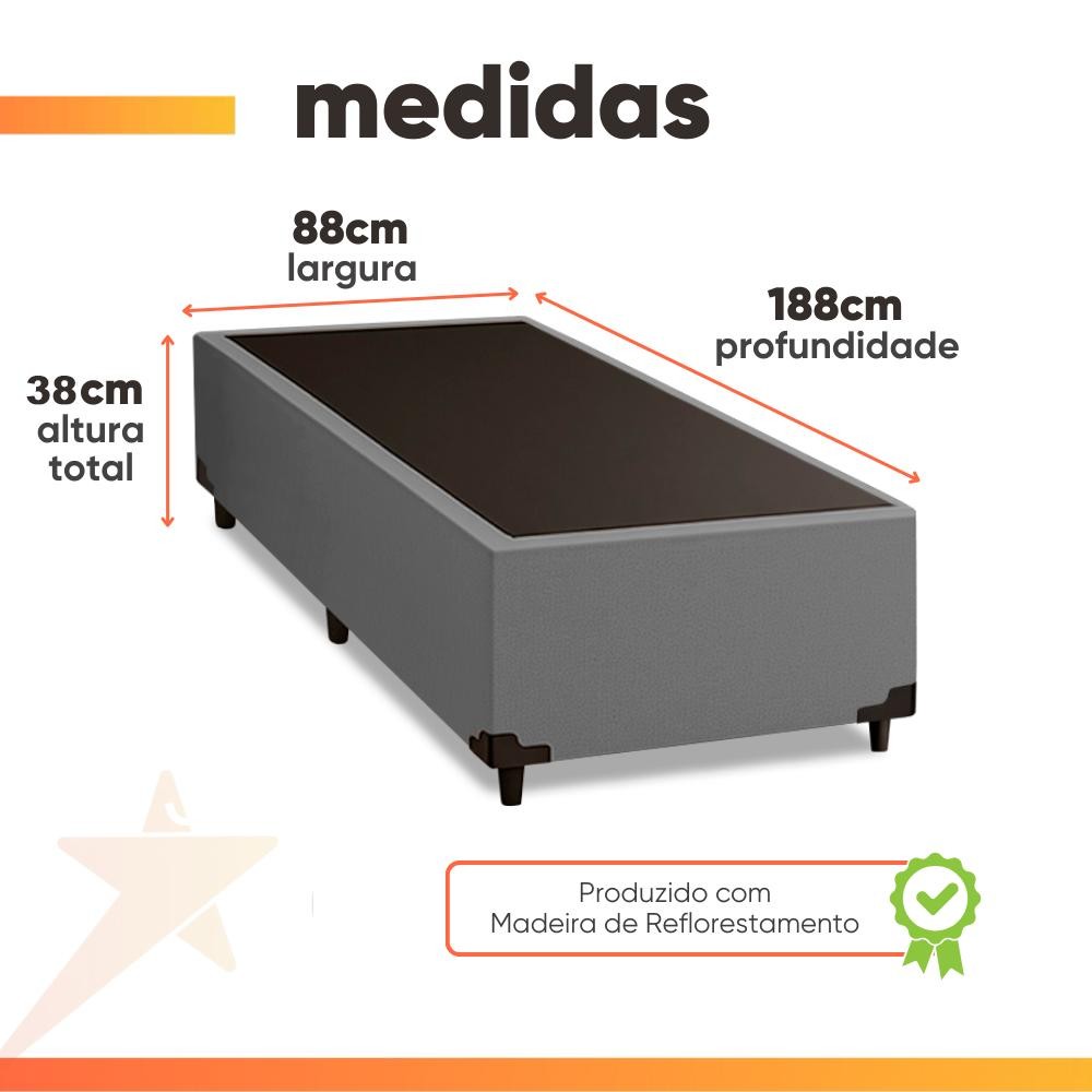 Cama Box Solteiro 0,88m com 38cm de Altura Suede Prince Cinza
