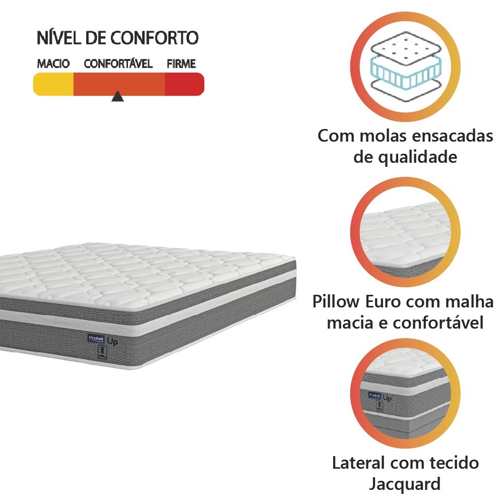 Colchão Casal Molas Ensacadas Euro In Up 138x188x26cm Cinza / Branco Probel - Suporta até 110kg por Pessoa