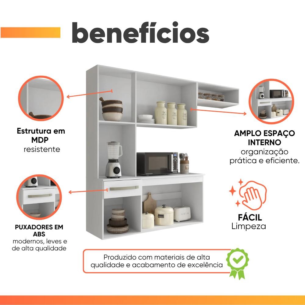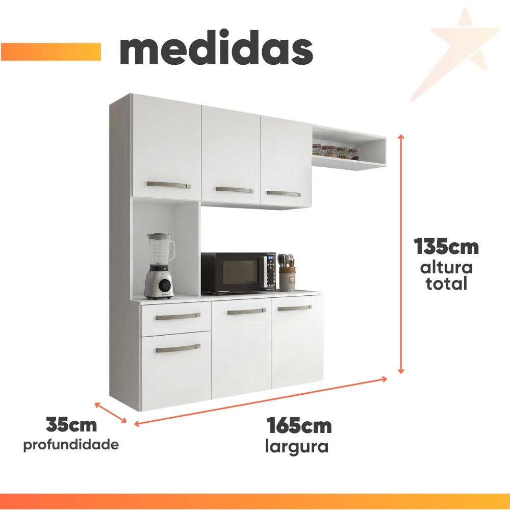 Armário de Cozinha Completa Suspenso com Balcão 6 Portas 1 Gaveta Belíssima Branco Aramóveis
