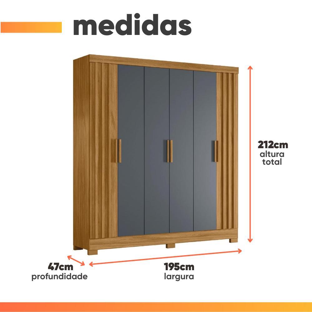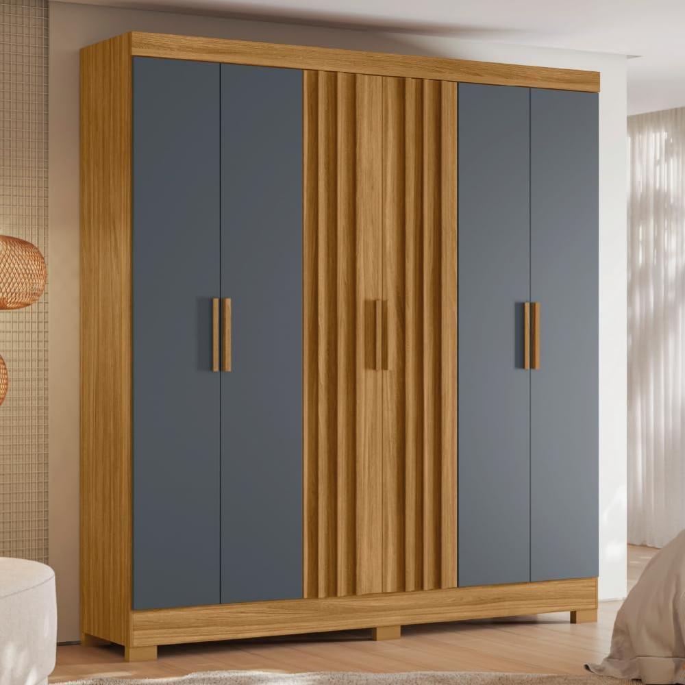 Guarda Roupas Casal Ripado 6 Portas 2 Gavetas Freijó/Cinza Valença Moval