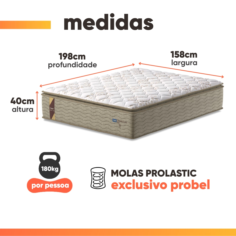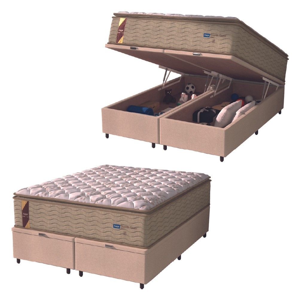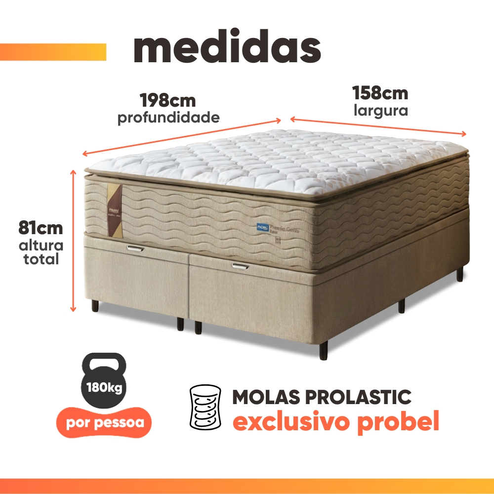 Cama Box Baú Colchão Casal Queen Probel Molas Guarda Costas Max Pillow Top 158x198x81cm Bege/Branco