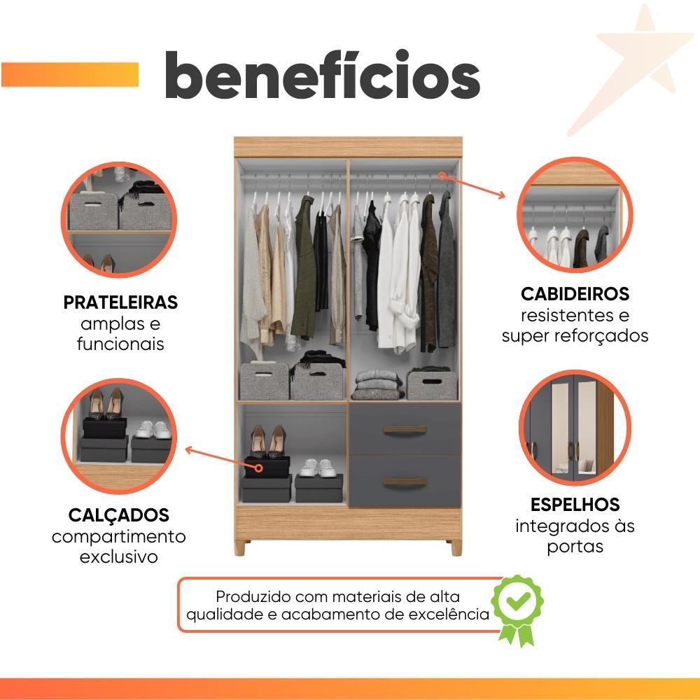 Guarda Roupas Solteiro com Espelho 4 Portas 2 Gavetas Mobi Nature / Grafite Albatroz