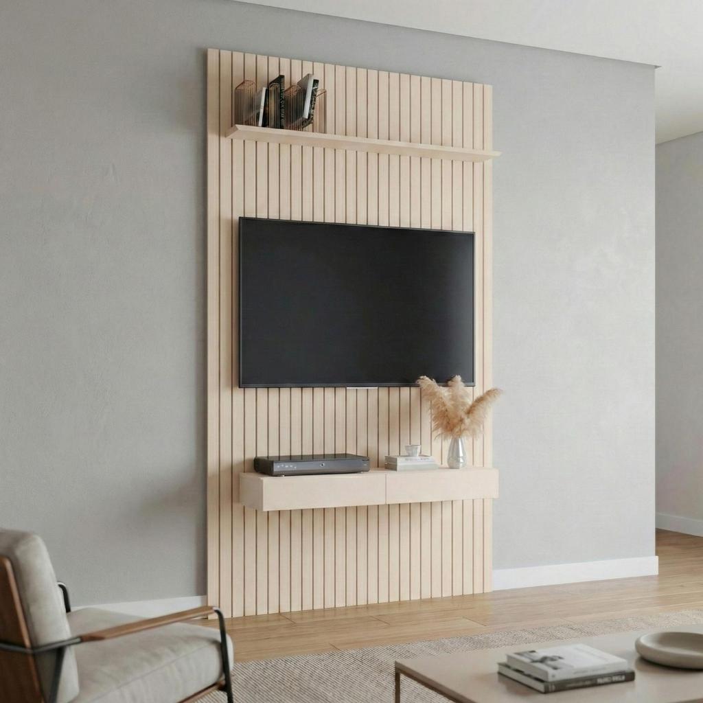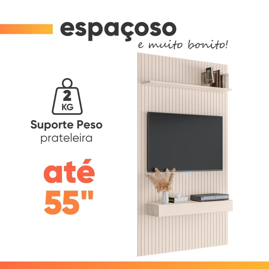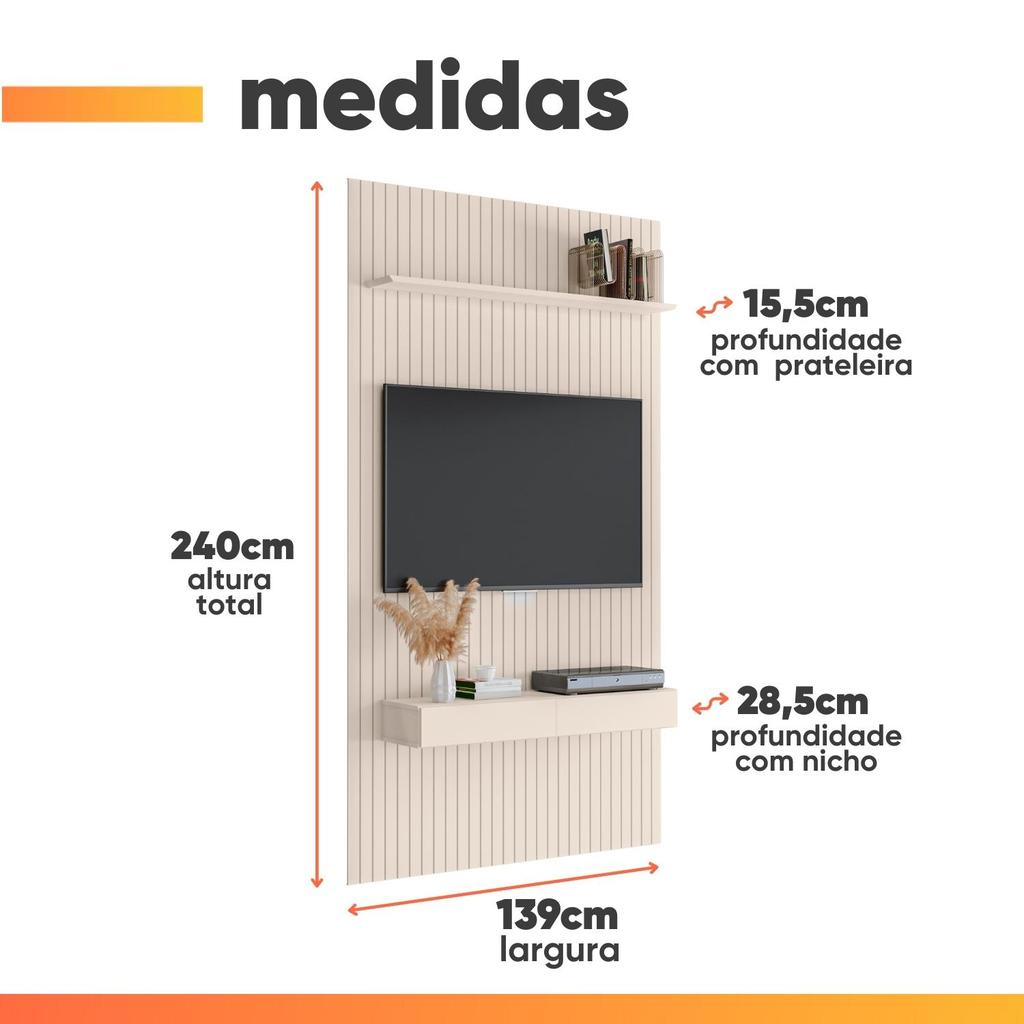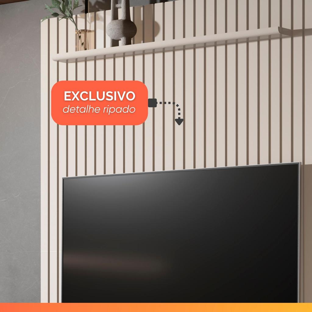 Painel para TV até 55 Polegadas 1,39x2,40m Ripado com Nicho Arbo Off White EDN