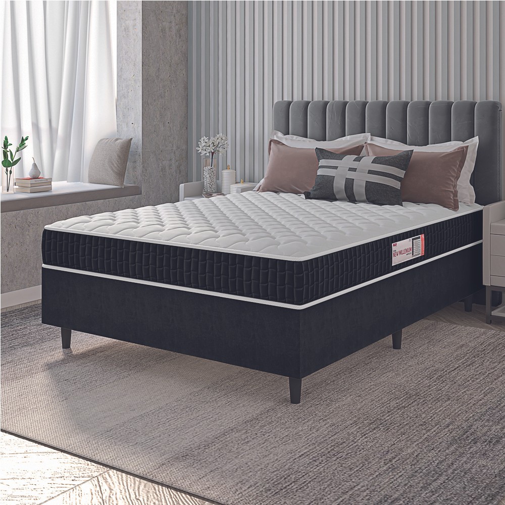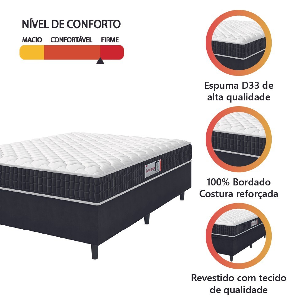 Cama Box Colchão Casal Espuma D33 New Millenium 138x188x57cm Preto / Branco Hellen - Suporta até 120kg por Pessoa