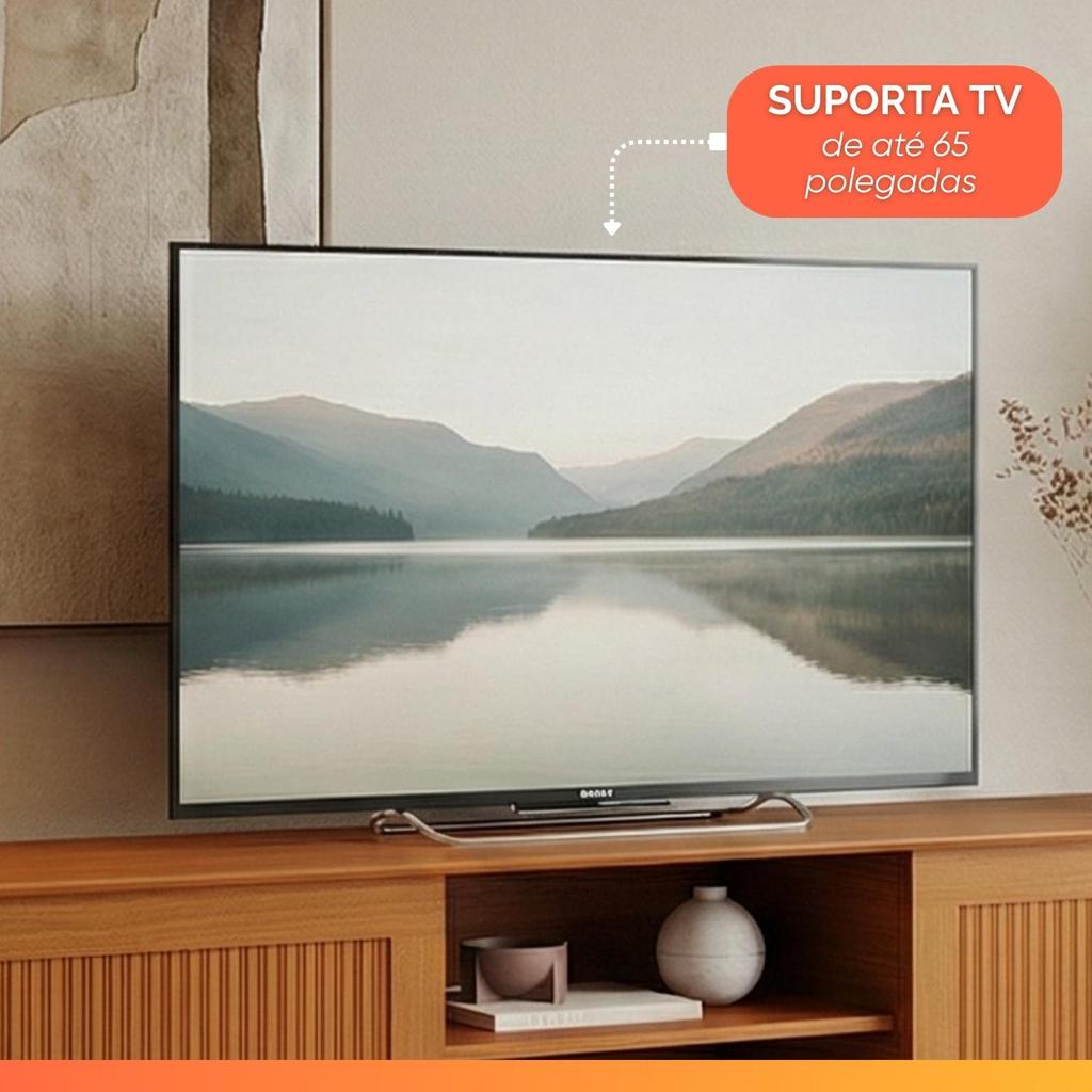 Rack Bancada para TV até 65 Polegadas 1,80m Ripado Impressão 3D 2 Portas Cedro King EDN