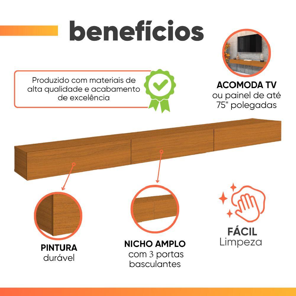 Rack Suspenso para Painel ou TV até 75 Polegadas 3 Portas 2,00m Egeo EDN
