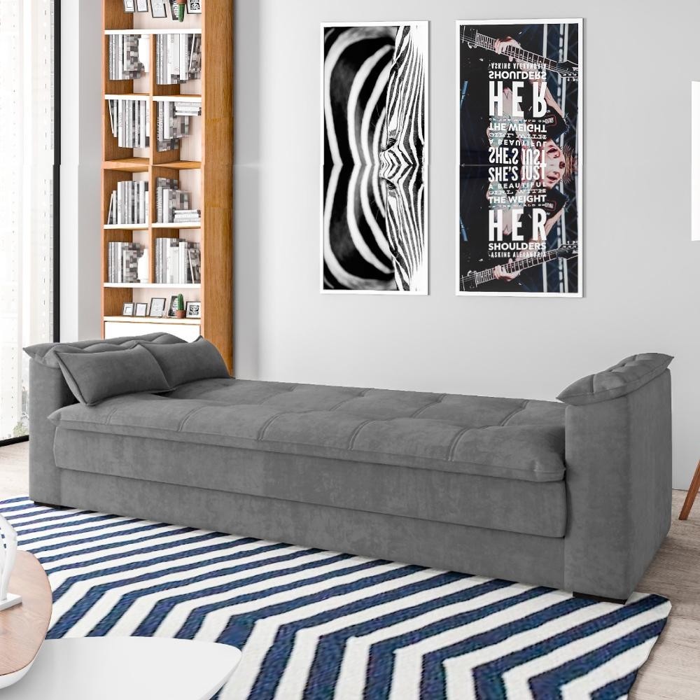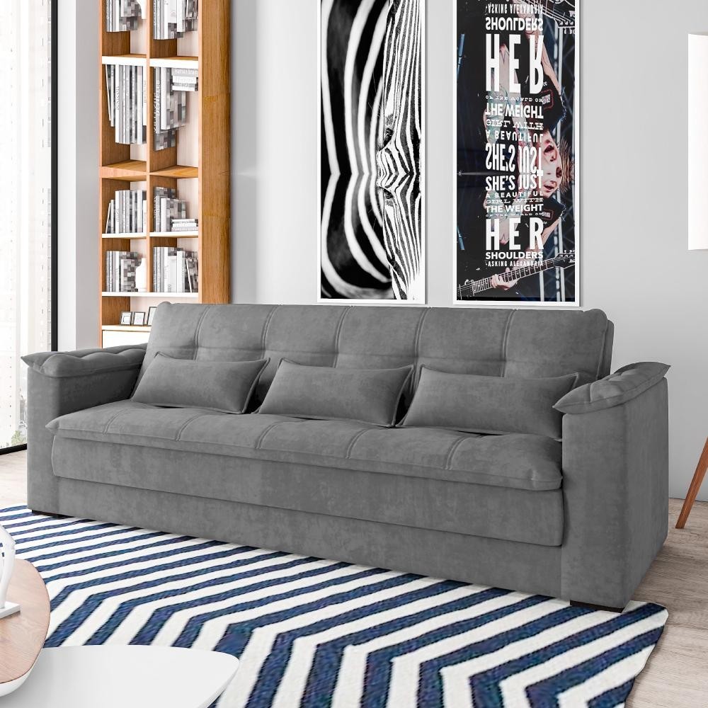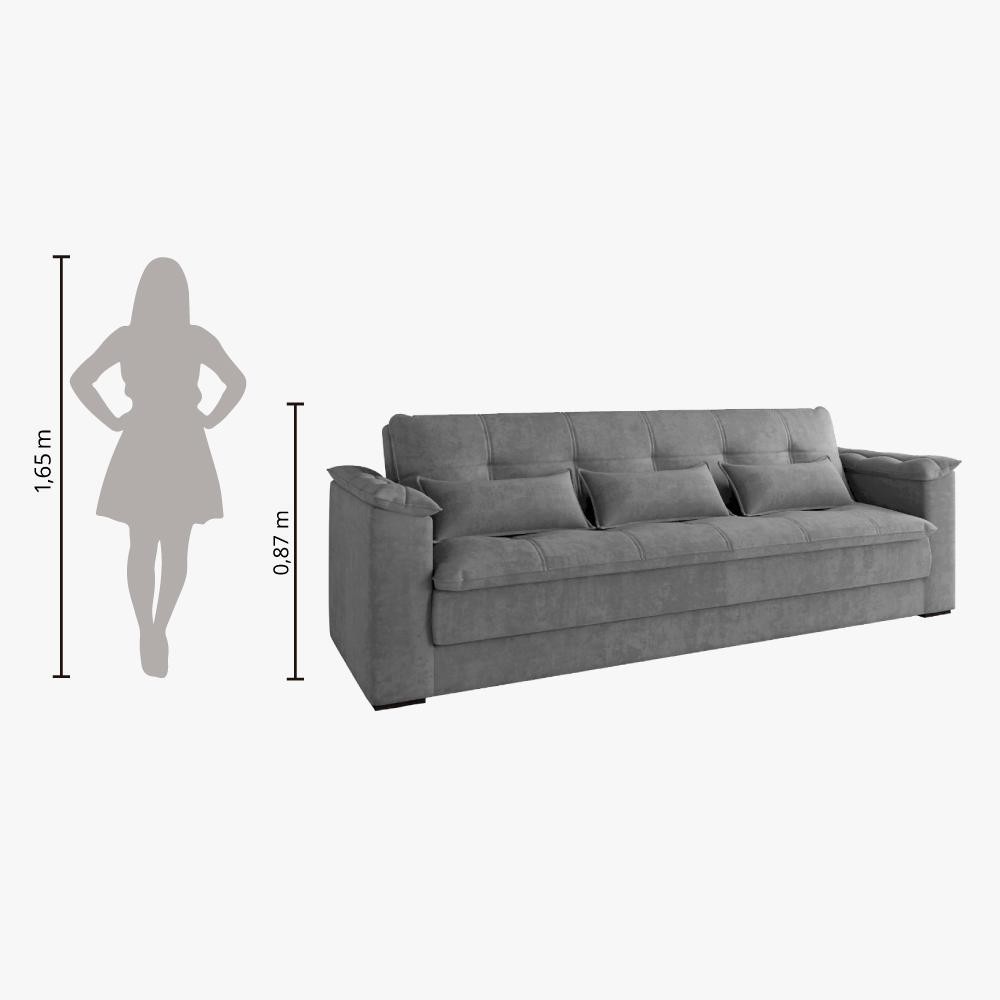 Sofá-cama Reclinável 3 Lugares Maria Suede Cinza