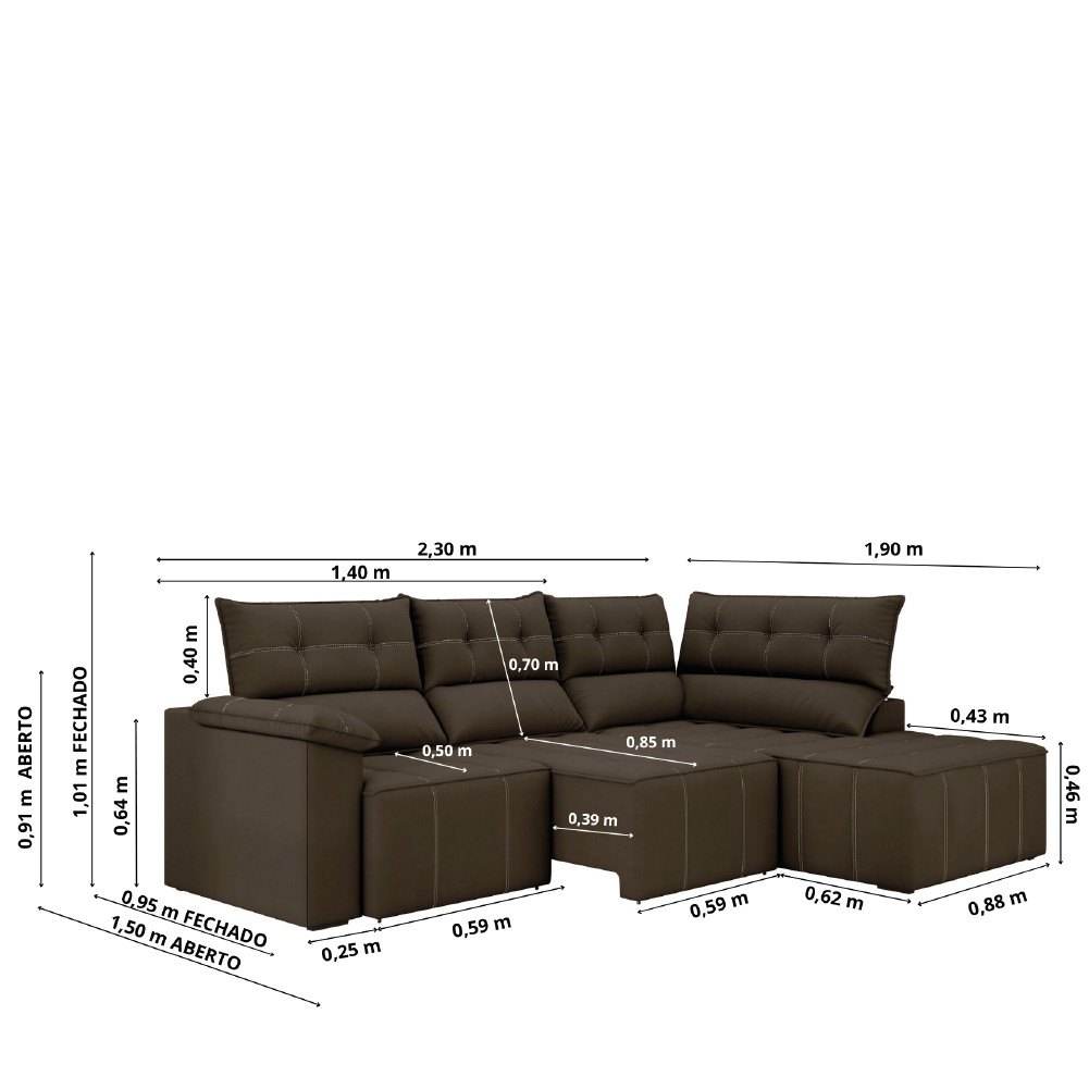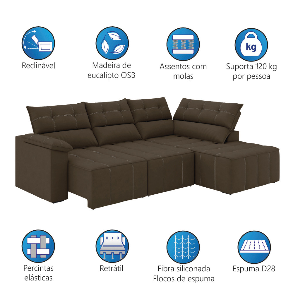 Sofá de Canto Retrátil e Reclinável 4 Lugares Santorini Veludo Luizzi