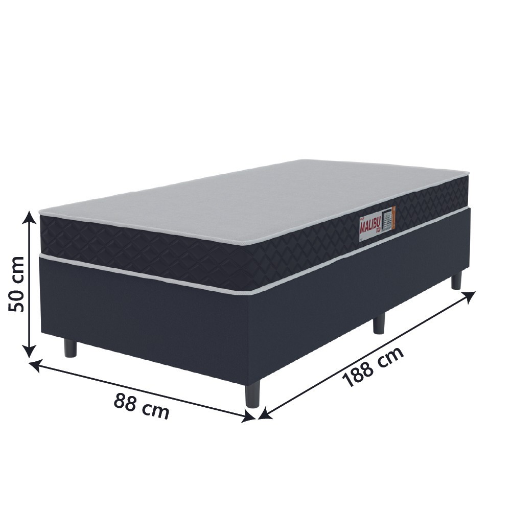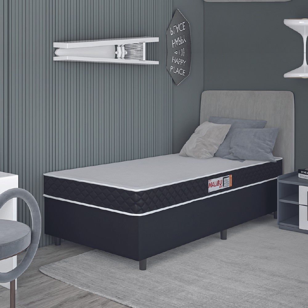 Cama Box Colchão Solteiro Espuma D20 Malibu 88x188x50cm Preto / Branco Hellen