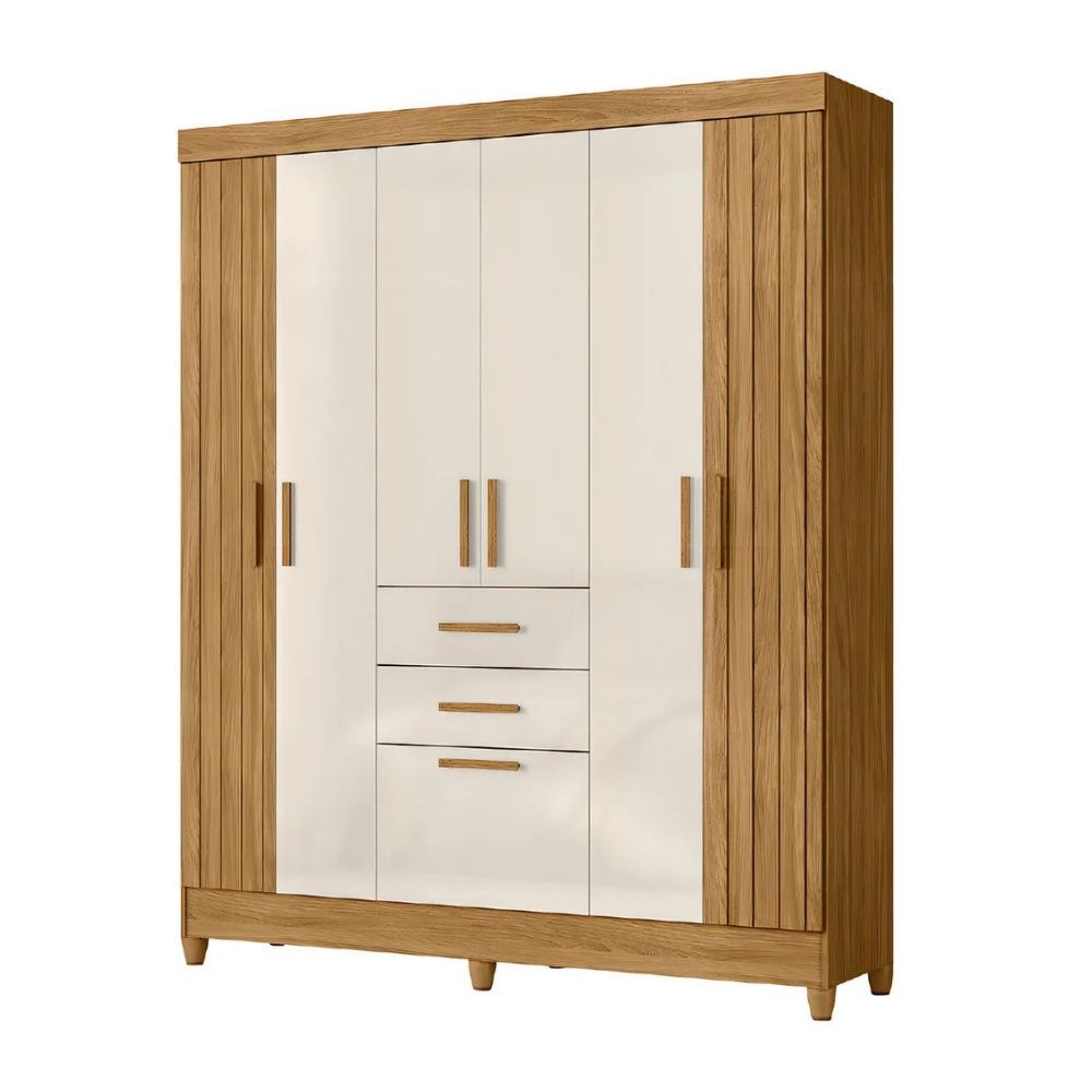 Guarda Roupas Casal Ripado 7 Portas 2 Gavetas Malta Madeirado / Off White Moval