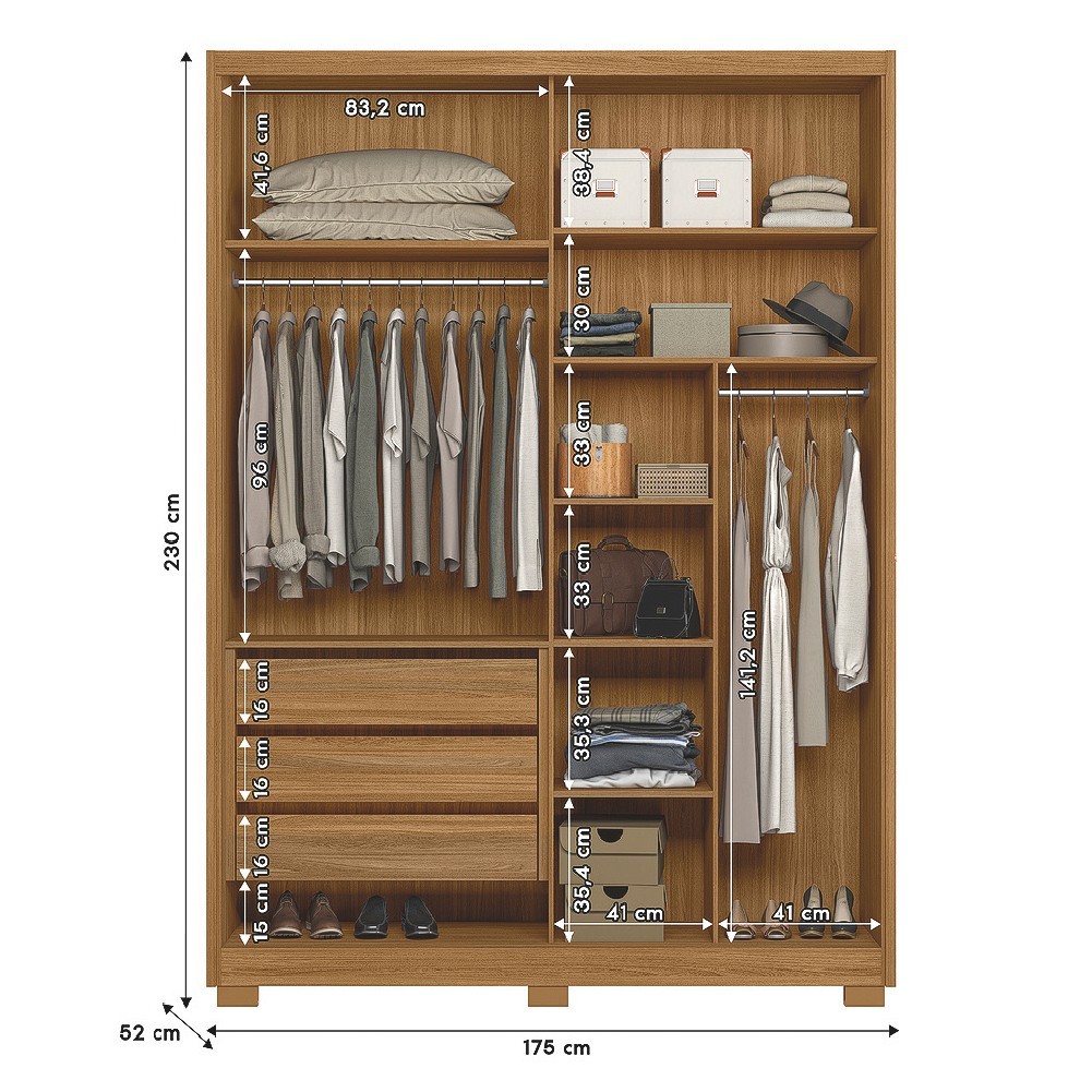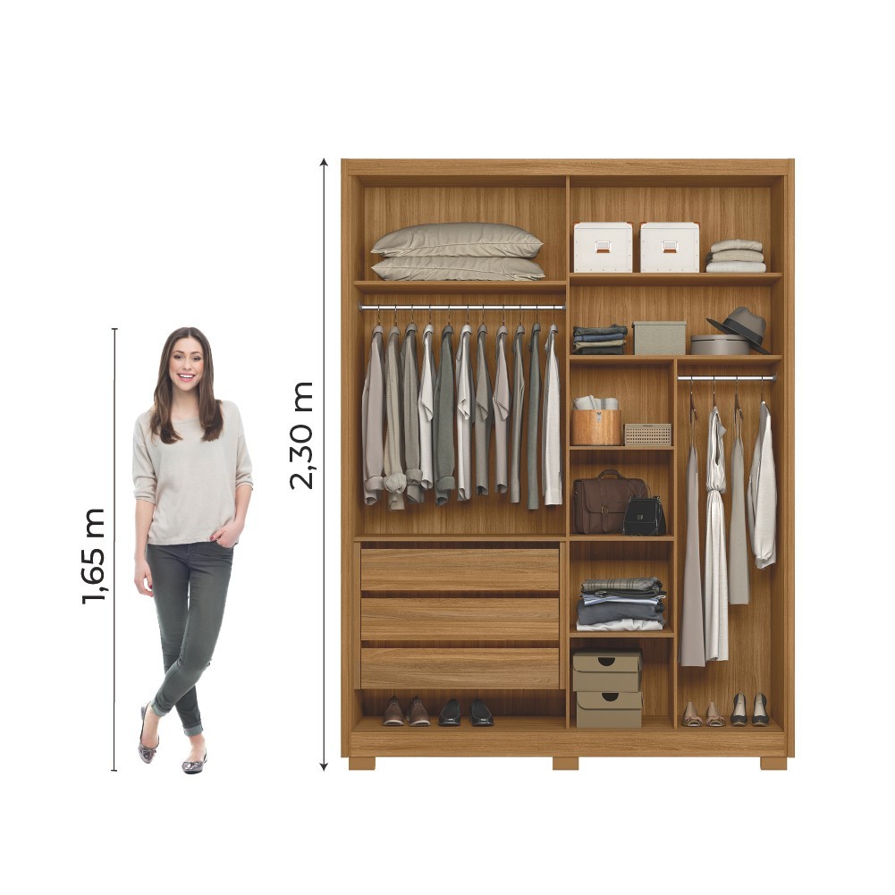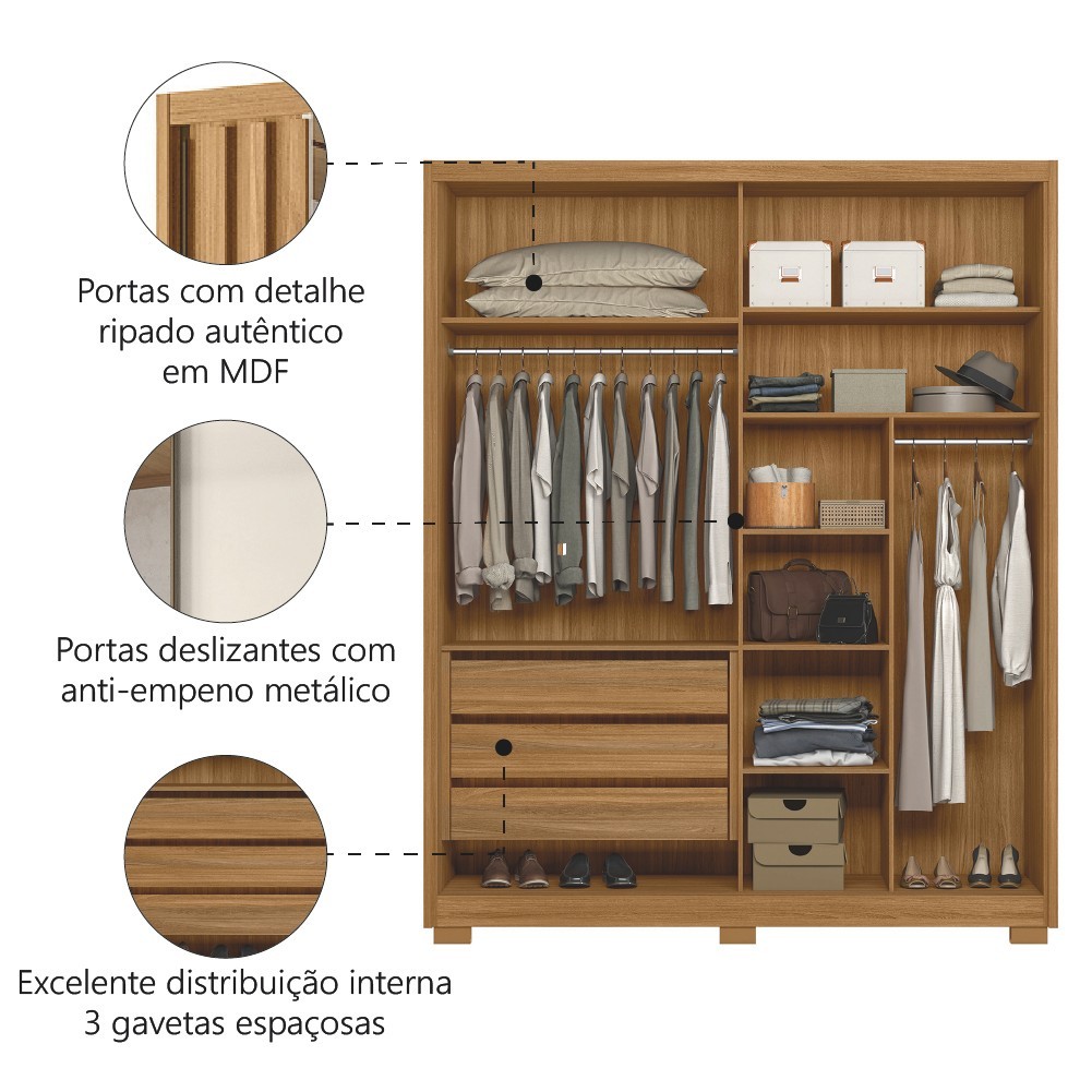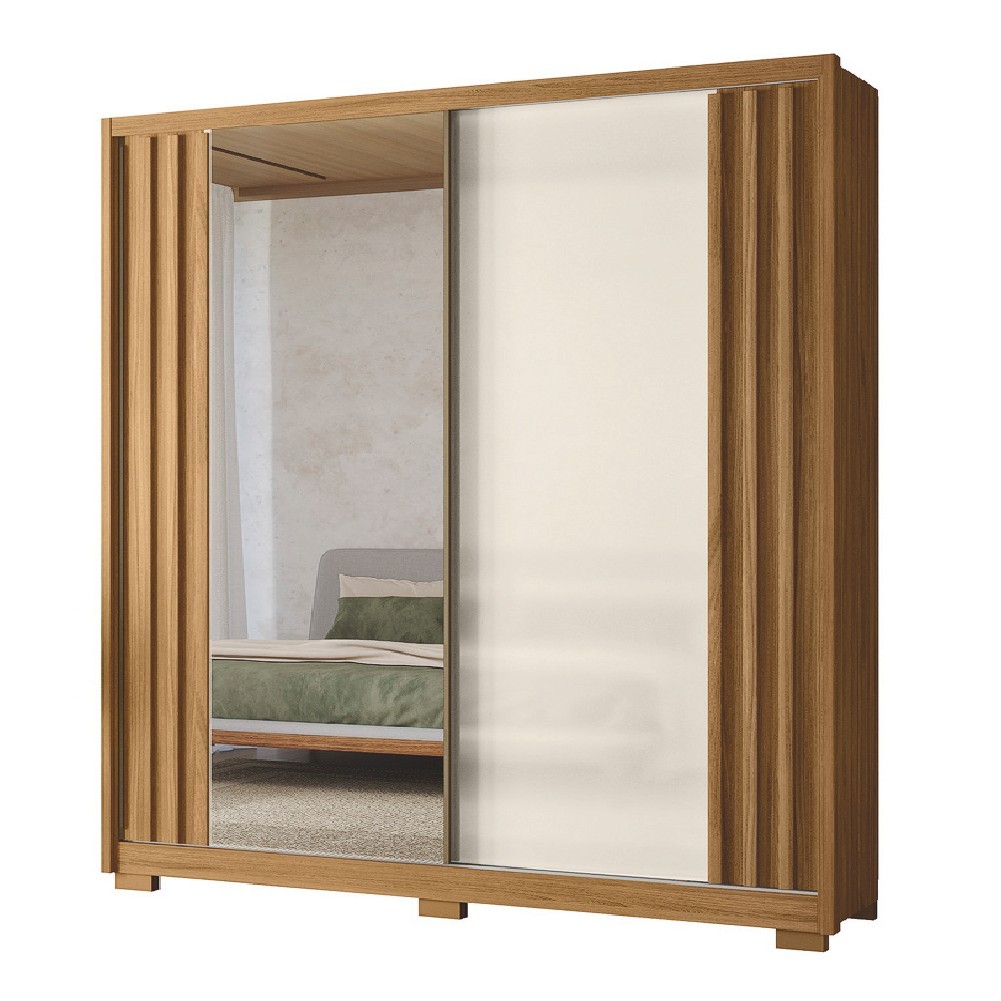 Guarda Roupas Casal Com Espelho Ripado 2 Portas de Correr 3 Gavetas Freijó/Off White Colorado Moval