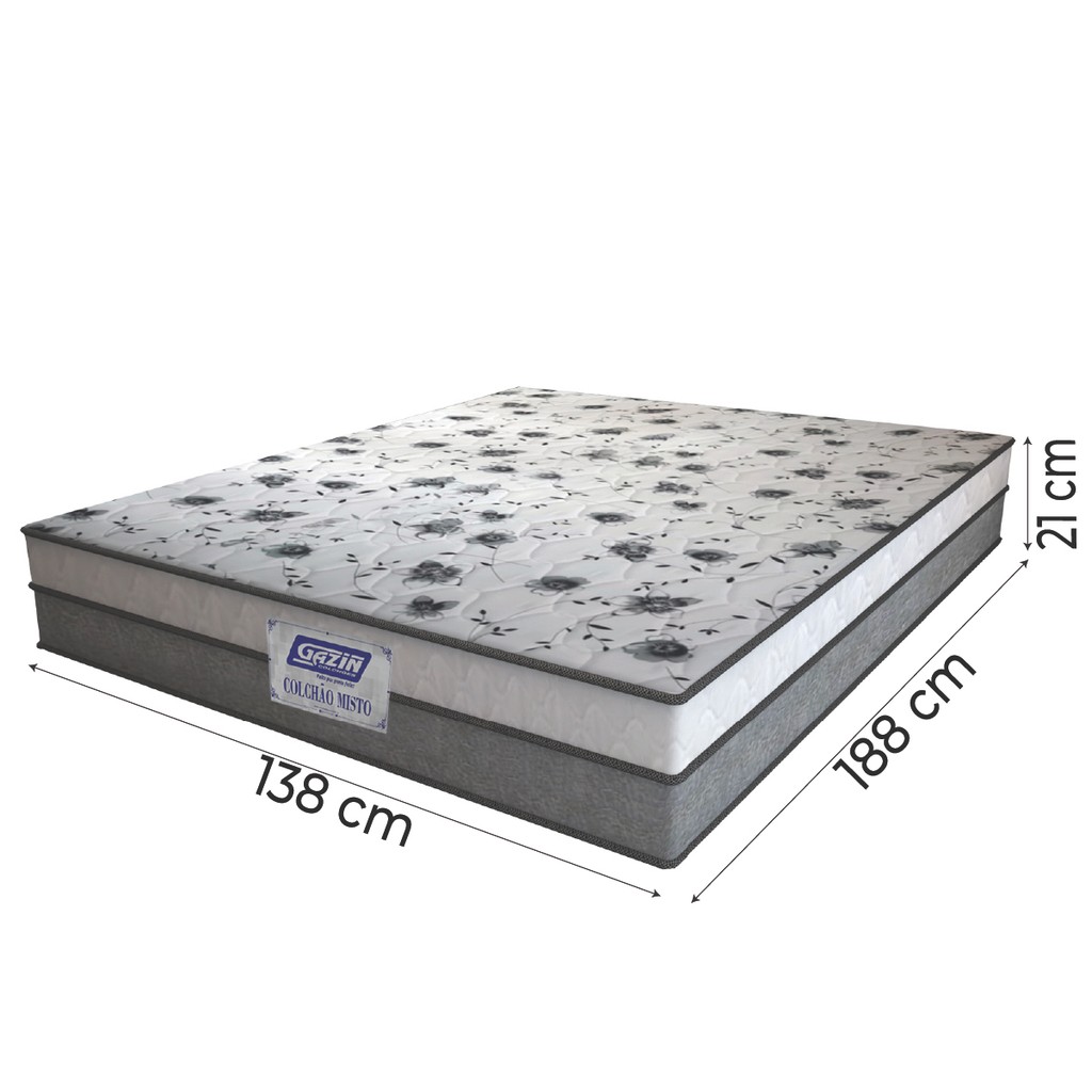 Colchão Casal Espuma D33 Fort 138x188x21cm Cinza/Branco Gazin - Suporta até 150kg por Pessoa