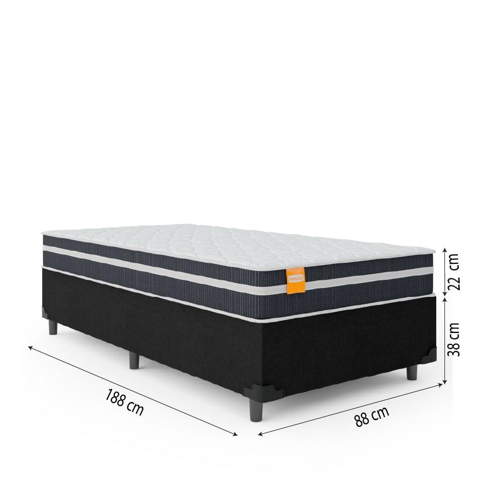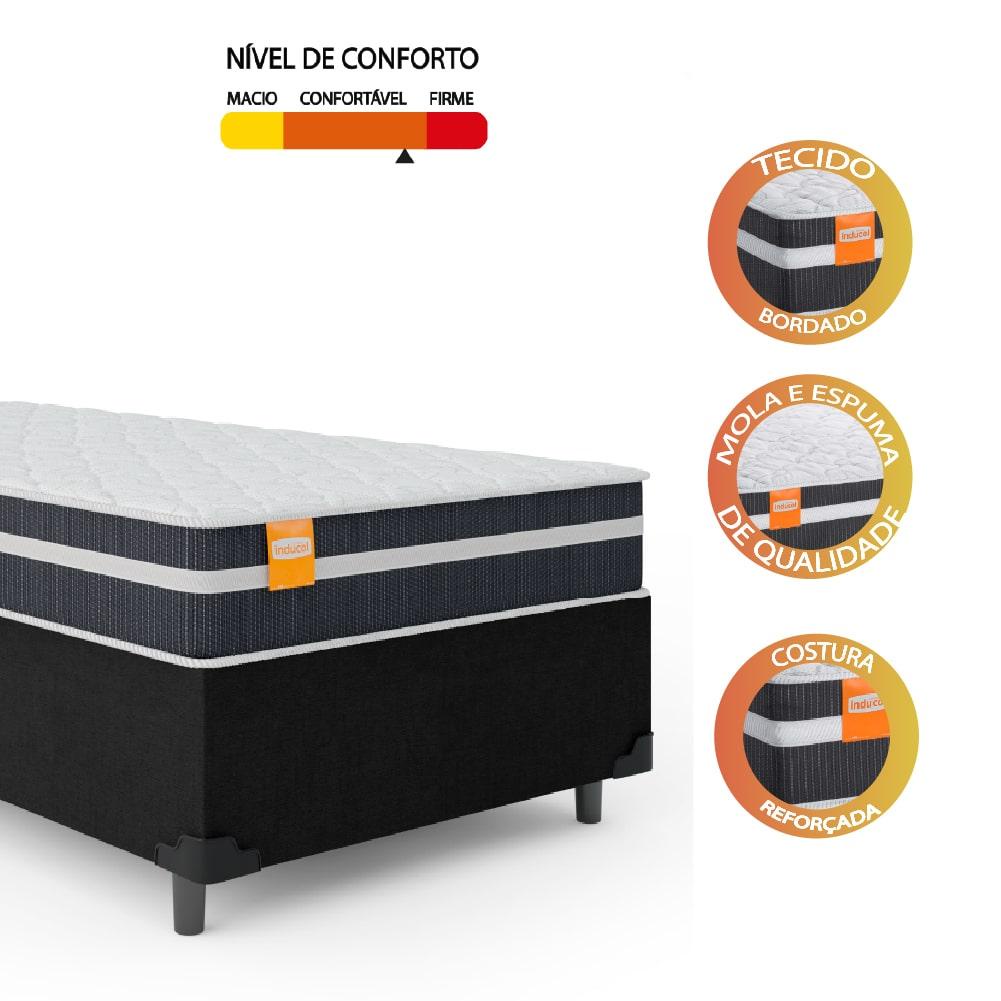 Cama Box Solteiro Colchão Molas Qatar 88x188x60cm Branco / Preto - Suporta até 200Kg