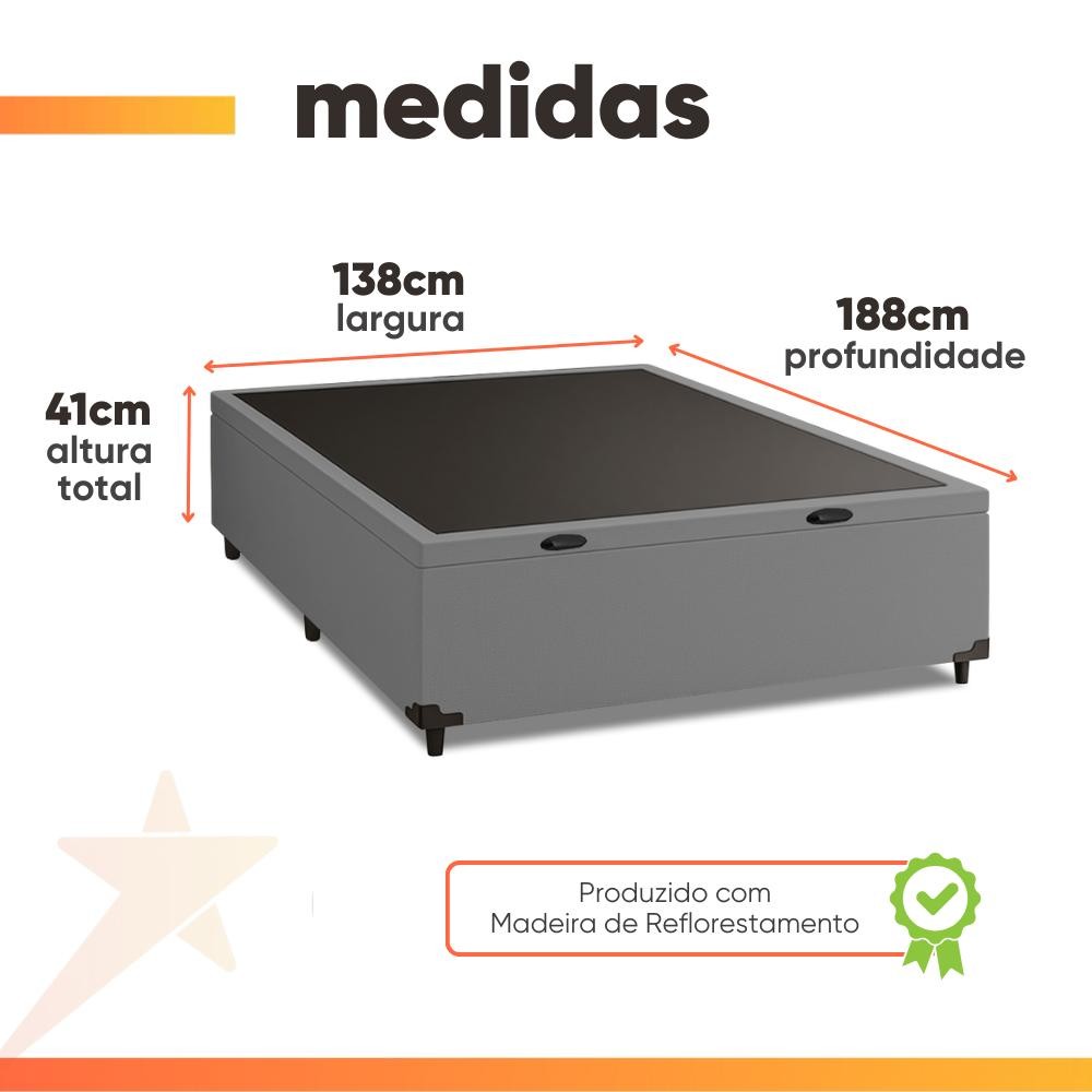 Cama Box com Baú Casal 1,38m com 41cm de Altura Prince Suede Cinza