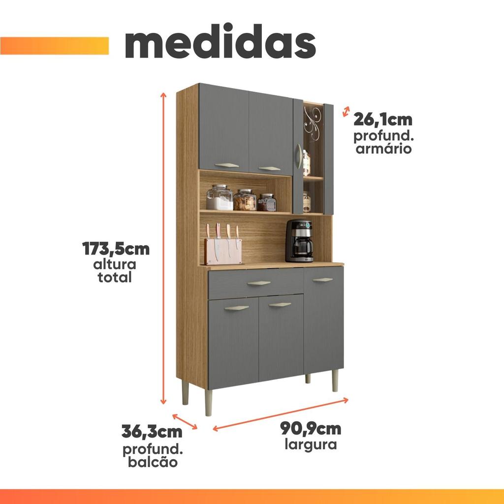 Armário de Cozinha Completa Golden 6 Portas 1 Gaveta Freijó / Grafite