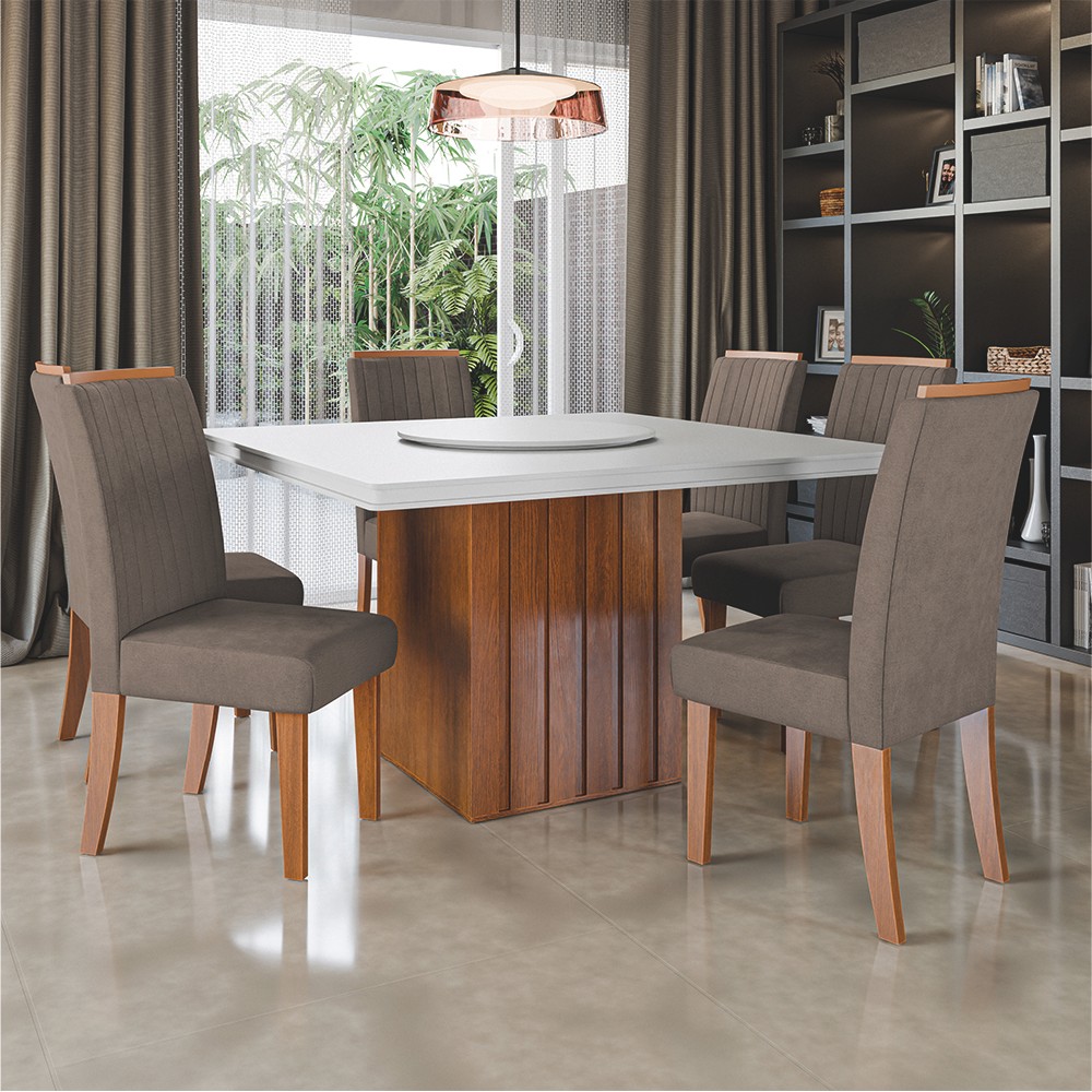 Conjunto Sala de Jantar Amsterdã New Mesa com Tampo Giratório 6 Cadeiras Grécia Madeirado/Mascavo