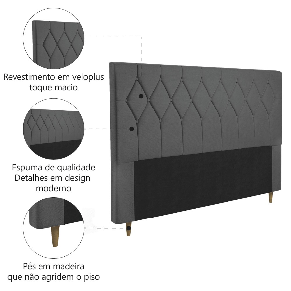 Cabeceira Estofada Para Cama Box Casal Queen Miami de 1,60m Suede Dobuê