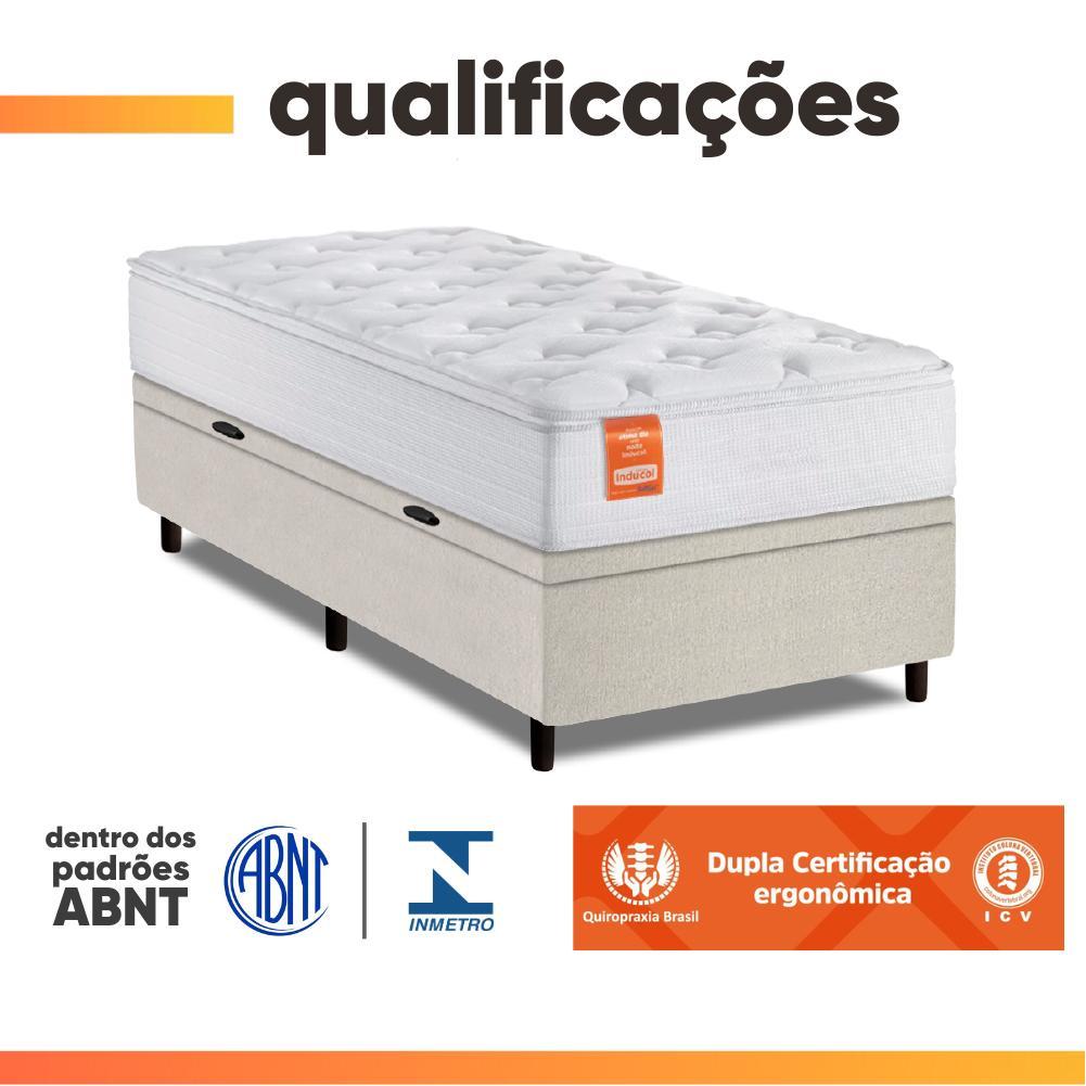 Cama Box Baú Colchão Solteiro Molas Ensacadas Real 88x188x68cm Linho Branco Inducol - Suporta até 130kg por Pessoa