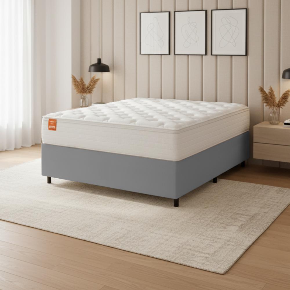 Cama Box Colchão Casal Molas Ensacadas Real 138x188x65cm Branco / Cinza Inducol - Suporta até 130kg por Pessoa