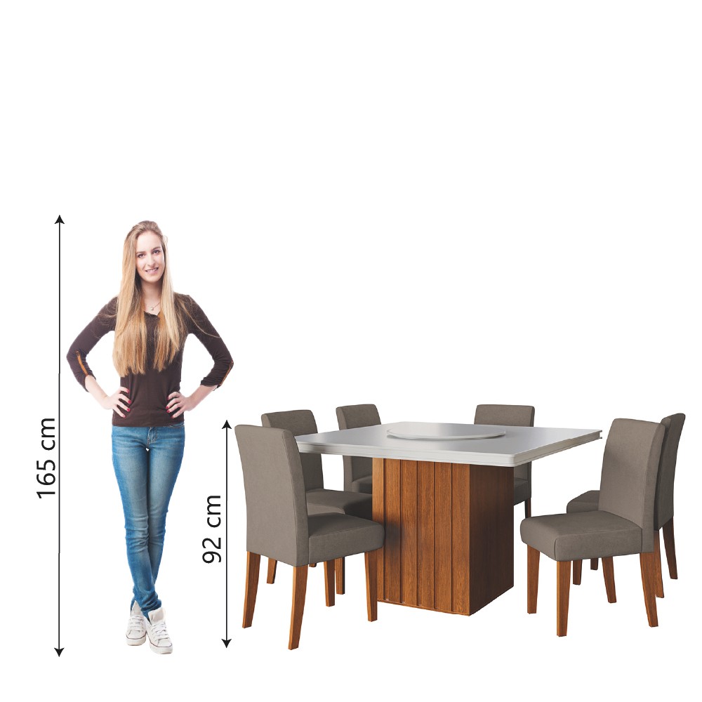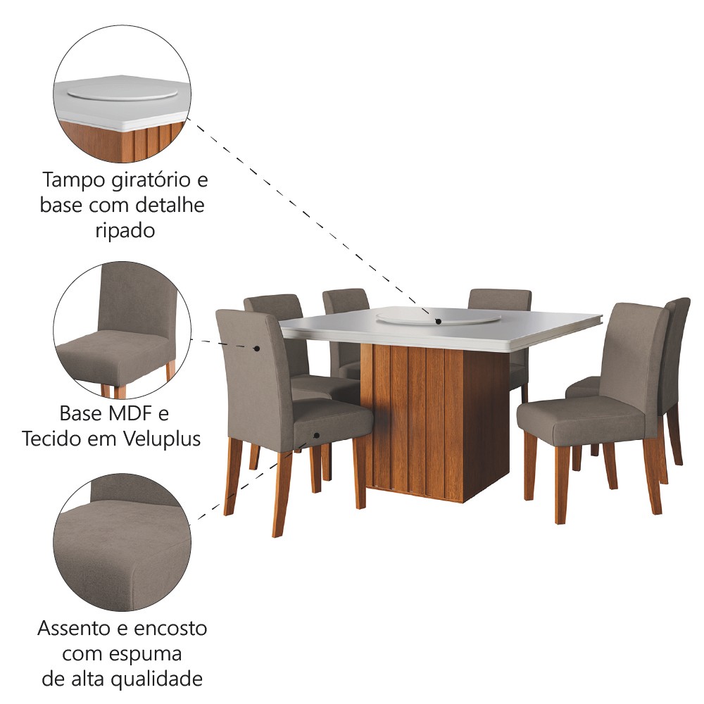 Conjunto Sala de Jantar Amsterdã New Mesa com Tampo Giratório 6 Cadeiras Trieste Madeirado/Mascavo
