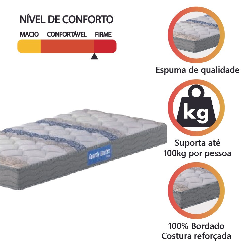 Colchão Solteiro Espuma D33 Guarda Costas Sleep 88x188x14cm Branco / Cinza Probel - Suporta até 100kg por Pessoa