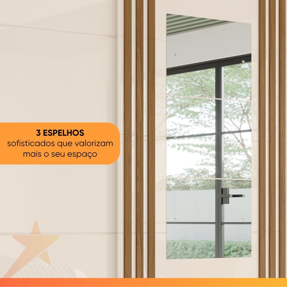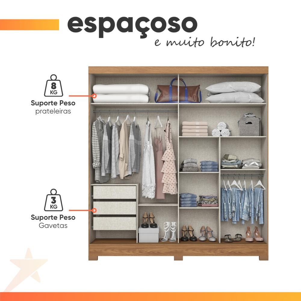 Guarda Roupas Casal 2 Portas de Correr com Espelho Ripado 3 Gavetas Jasmim