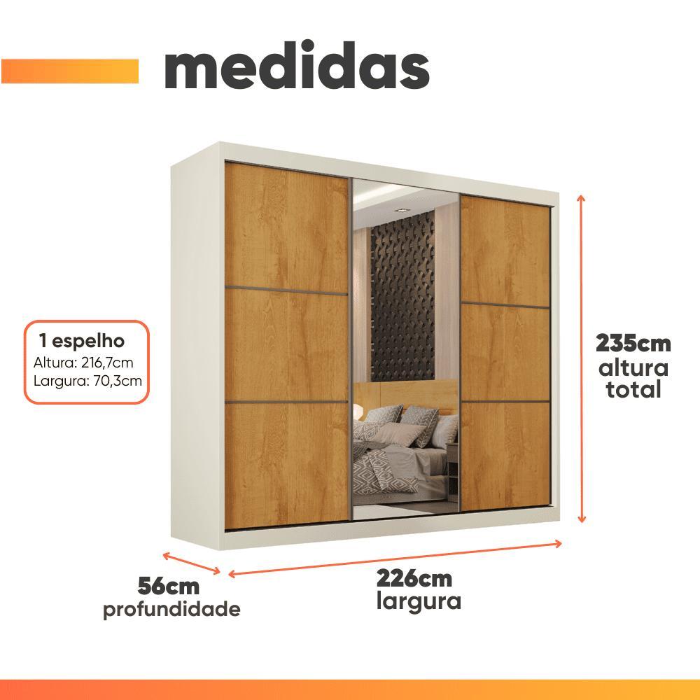 Guarda Roupas Casal 3 Portas de Correr Com Espelho 100% MDF Flex 6 Gavetas Argel
