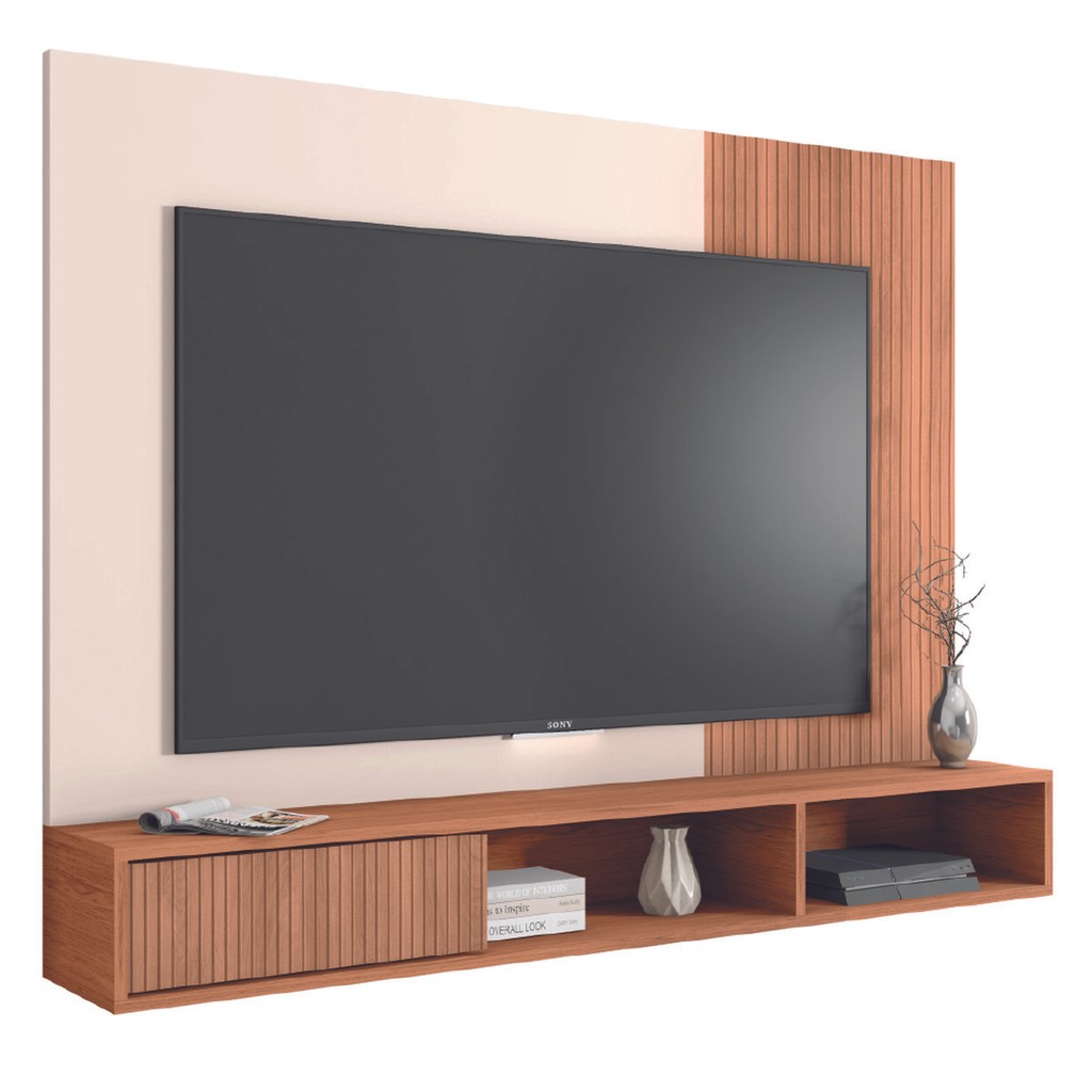 Painel Para TV Até 55 Polegadas Ripado Impressão 3D Com Nicho Madrid Madeirado / Off White Caemmun
