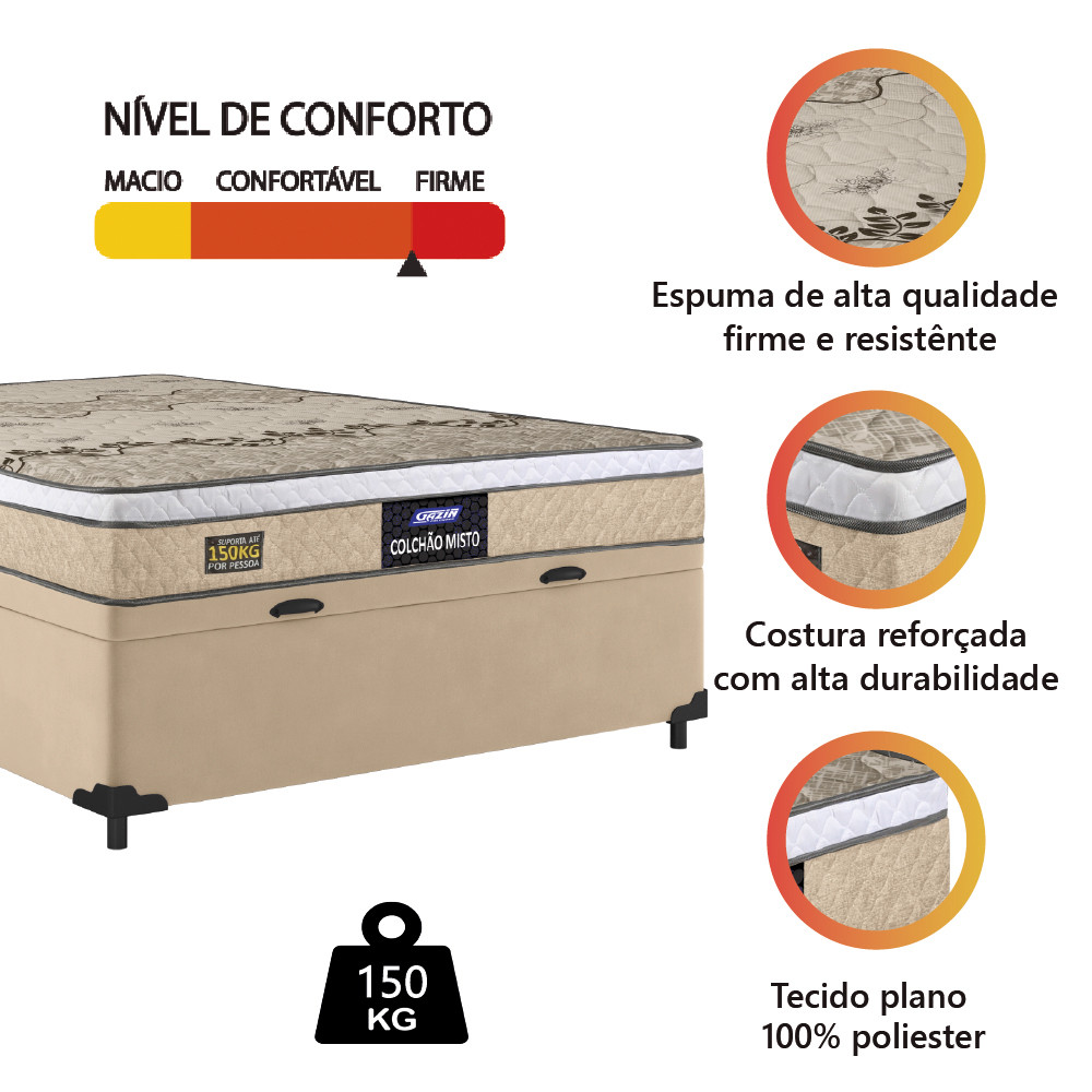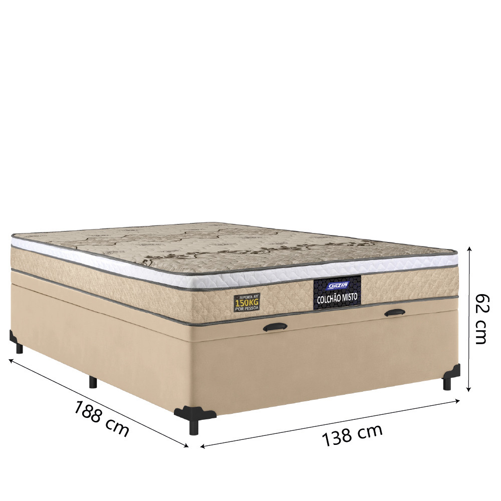 Cama Box Baú Casal Colchão Espuma D33 Fort Gazin 138x188x62cm Bege / Branco