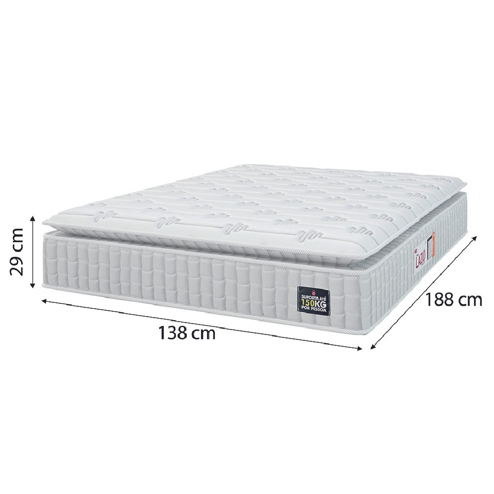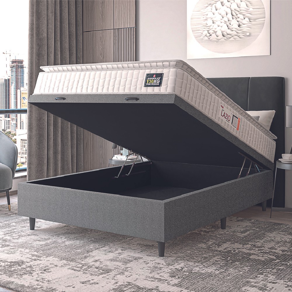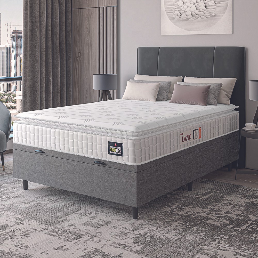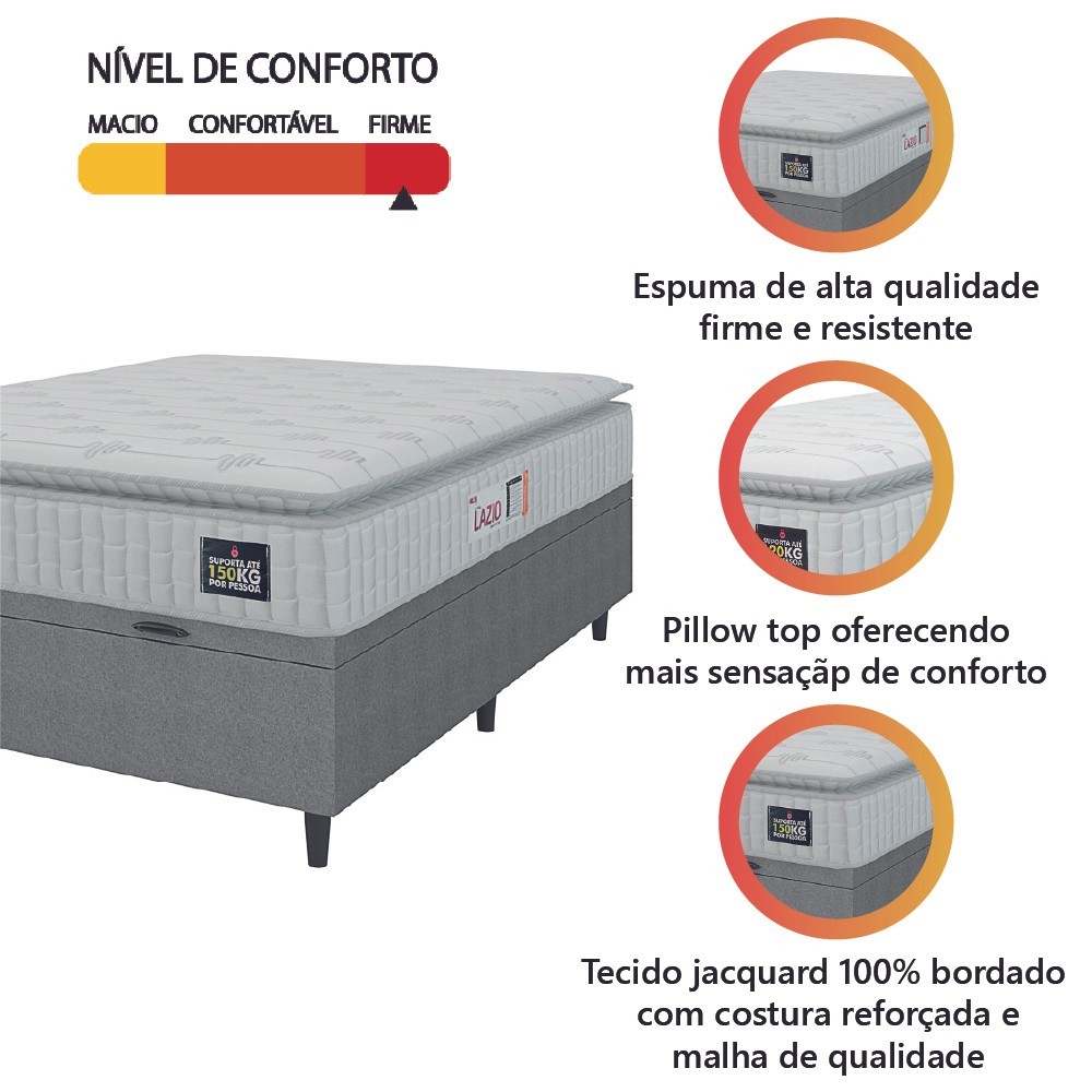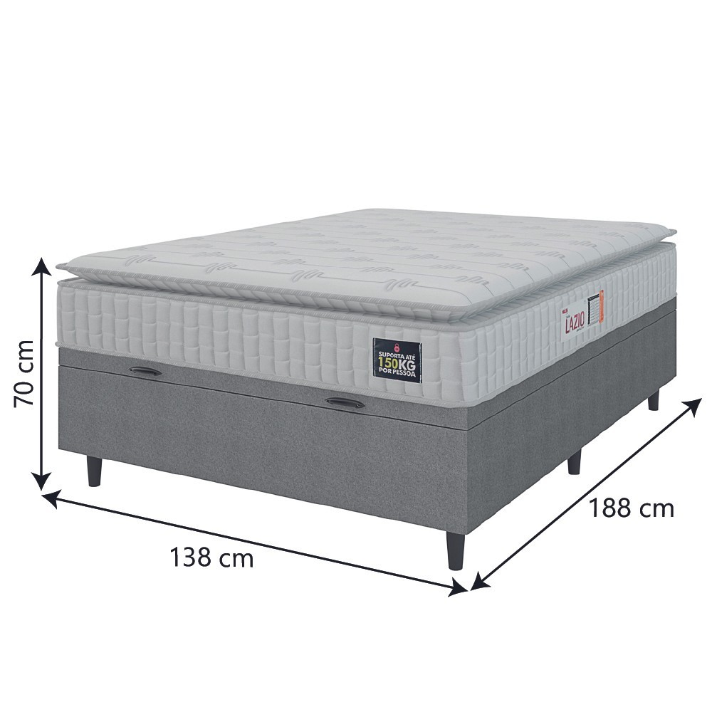 Cama Box Baú Colchão Casal Espuma D45 Lazio Pillow Top 138x188x70cm Branco / Cinza Hellen - Suporta até 120kg por Pessoa