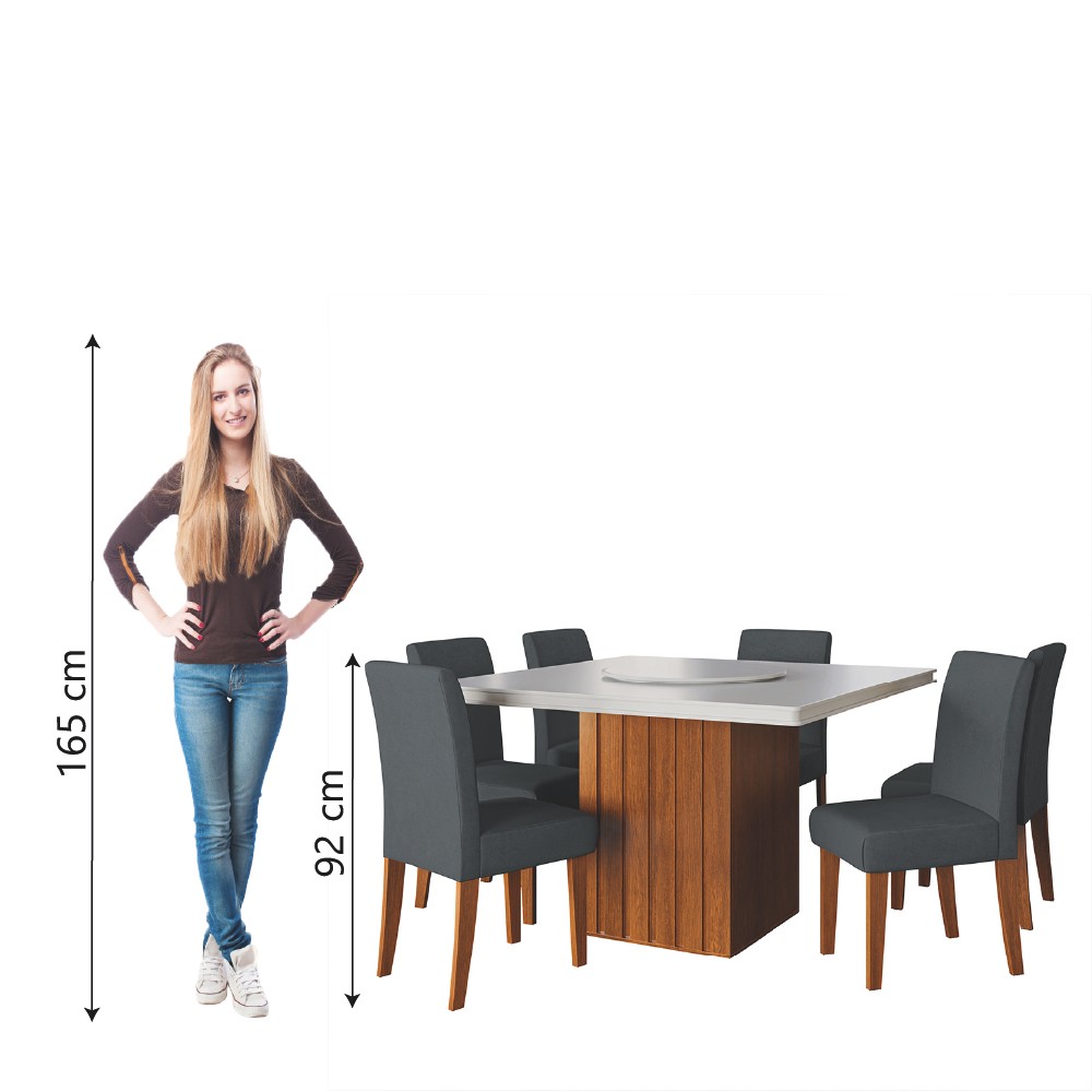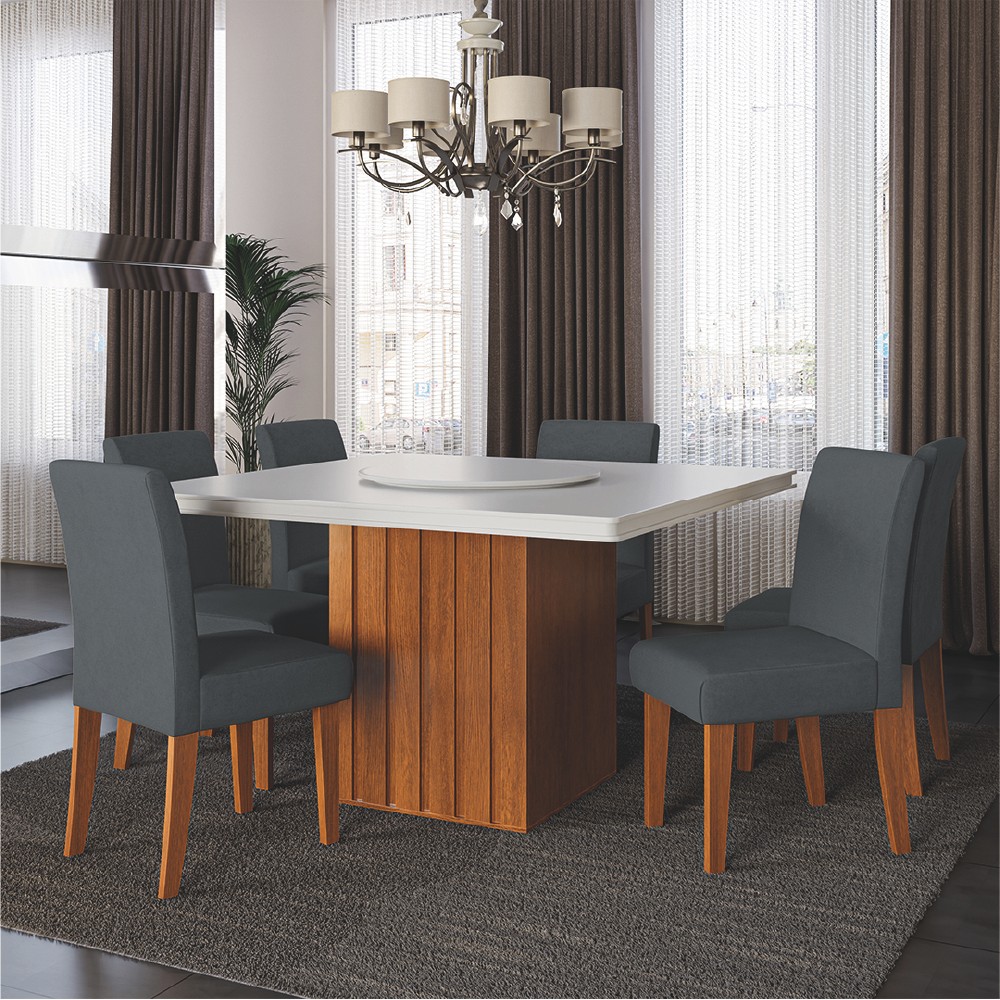 Conjunto Sala de Jantar Amsterdã New Mesa com Tampo Giratório 6 Cadeiras Trieste Madeirado/Grafite